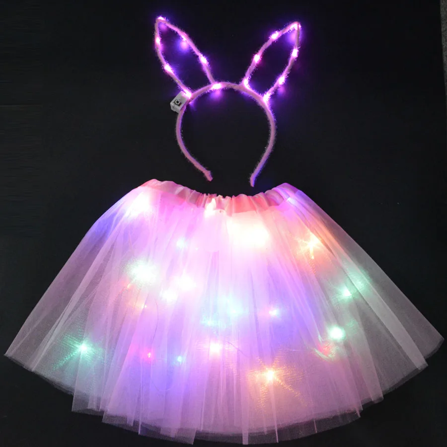 Детское платье-пачка со светодиодной подсветильник, повязка на голову для свадьбы, вечеринки, косплея в виде кошки, кролика, кролика, Пасхи, Дня Святого Валентина