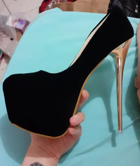 Странный запах, но очень хорошая обувь. Очень высокий каблук. Очень долгая доставка. Возьмите 2 размера выше для travesti crossdresser