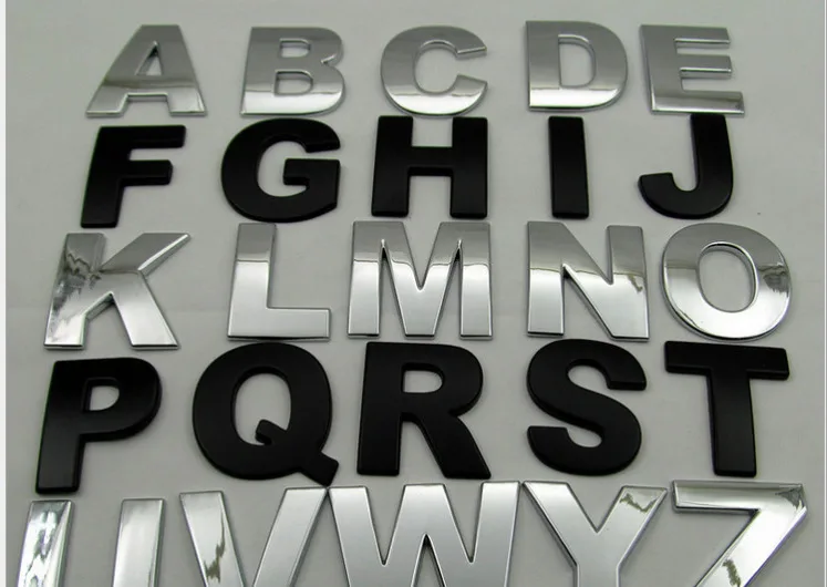 Металлические буквы на двухстороннем скотче. Для авто - в самый раз.