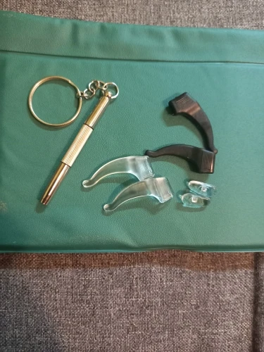 Очки как в описании, есть некоторые сомнения, стоило ли брать ребенку (сочетание металла с пластиком в руках подростка вряд ли проживет долго). В подарок идут отвертка-брелок для очков, силиконовые заушники и прозрачный футляр для очков (заказывал с линзами по рецепту, не знаю, кладут ли подарок, если брать только оправу без линз). Смотрится красиво, ребенок доволен. Кому важно - дужки без флексов.