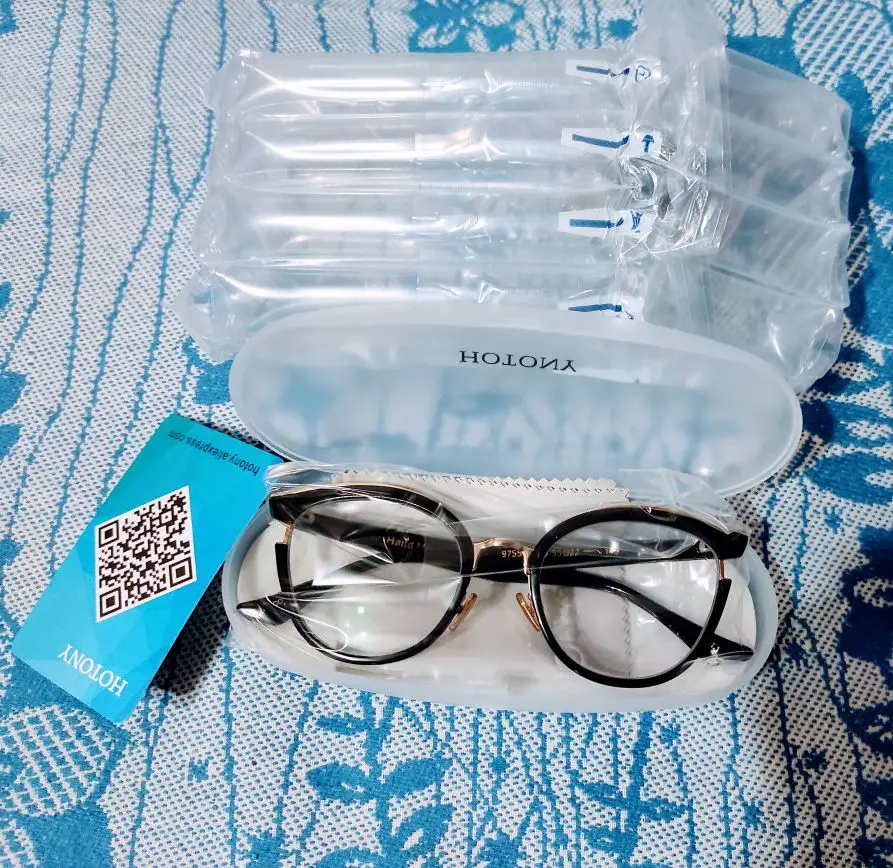 Я в восторге, очень стильная, качественная оправа. Упаковано надёжно в надувной пакет. Сам очки были в пакете и в пластиковом футляре. В подарок к очкам продавец положил тряпочку, отверточку, запасные носоупоры и еще силиконовые накладки, спасибо, очень приятно! Продавец порекомендовал линзы и я заказала сразу с диоптриями, вроде все правильно, по рецепту. Обошлось мне это в разы меньше, чем в наших оптиках, за такую сумму у нас чехол только для очков можно купить. Изготовление заняло недолго, где-то дня 3. Получила посылку за месяц.