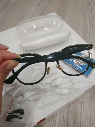 Очень приятный сервис от продавца, оперативно отвечали на сообщения. Очень быстро отправили товар, спасибо! Но качество самой оправы меня сильно смущает, я никому бы не порекомендовала в нее заказывать дорогие линзы. Есть матовые пятна на дужках, следы неаккуратной пайки на металлической части. P.S. Обратите внимание, на крупное лицо она не подойдёт, будет мала!