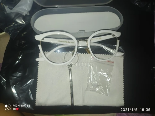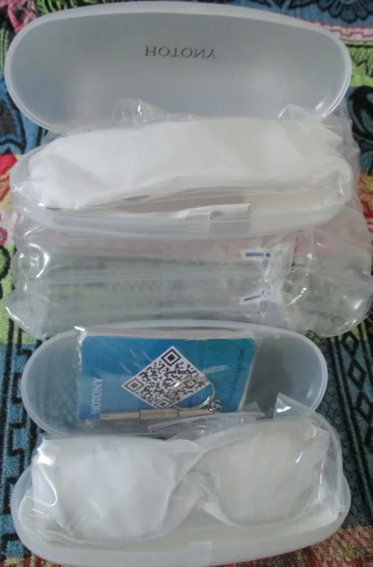 Посылка прибыла быстро. До Москвы за 16 дней. Упаковано очень надёжно. Оправа красивая, крепкая. Выглядит дорого. В комплекте очечник, салфетка из фибры, отвёрточка, запасные силиконовые носовые упоры и силиконовые насадки на дужки, чтоб очки с носа не сваливались. Супер довольна заказом.