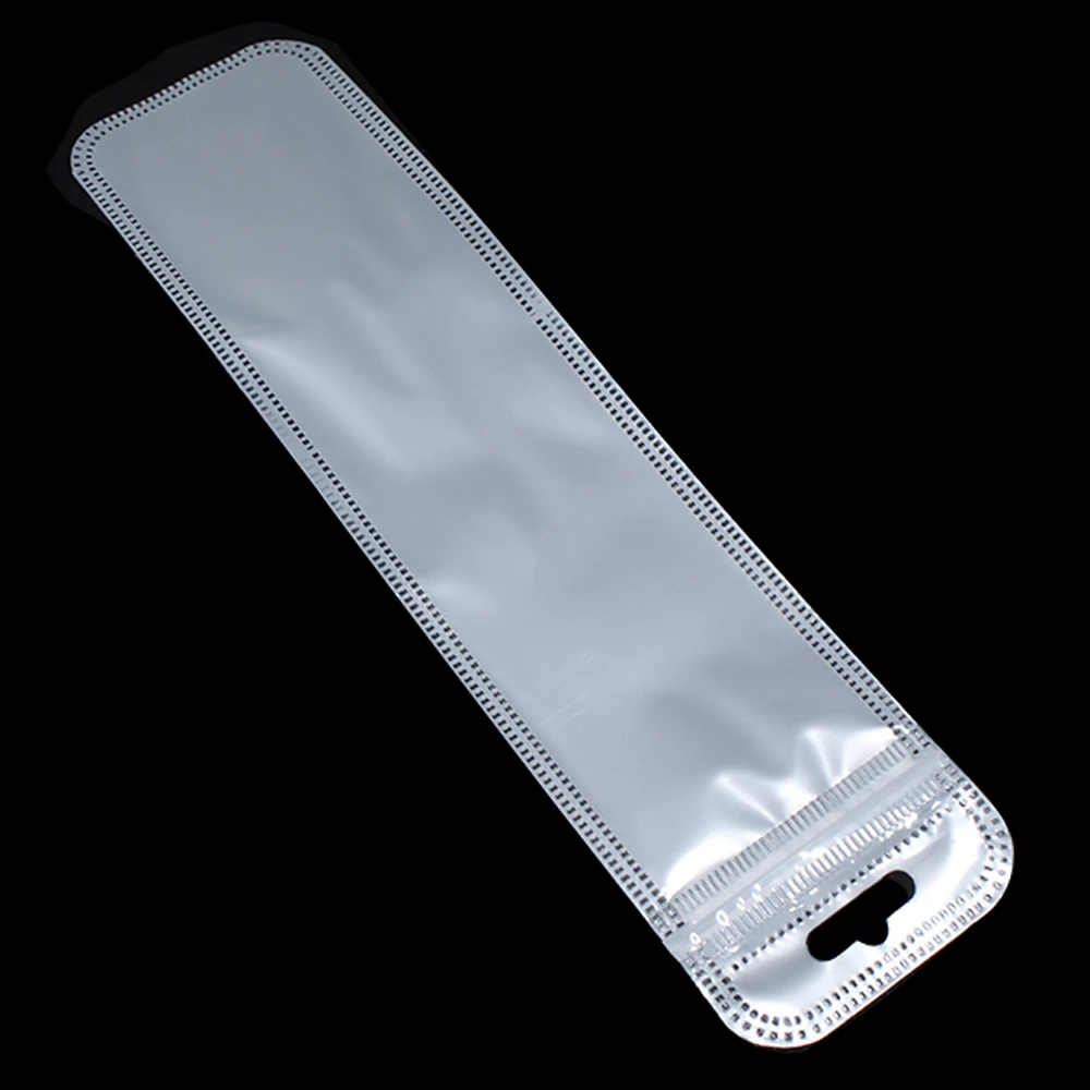 200 шт.лот, длинная стильная пластиковая прозрачная белая сумка для хранения упаковки с замком на молнии, розничная продажа, упаковка для ручек