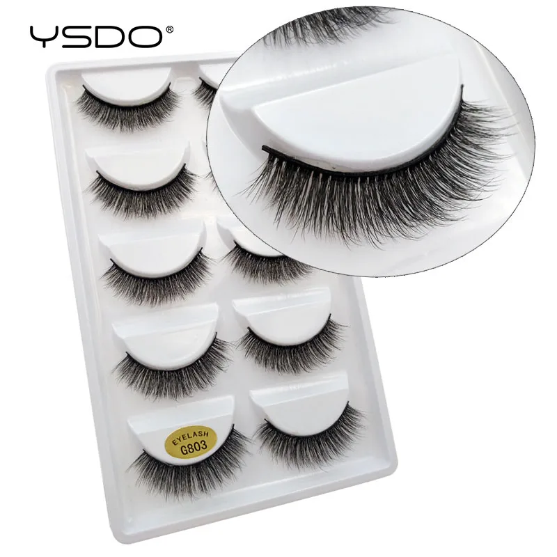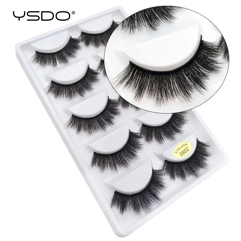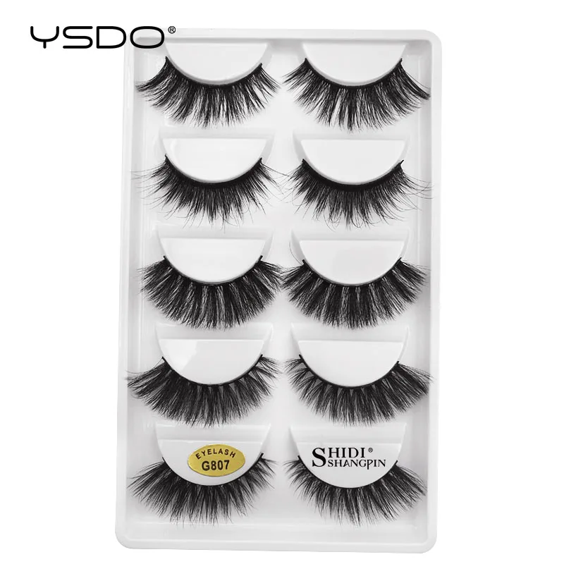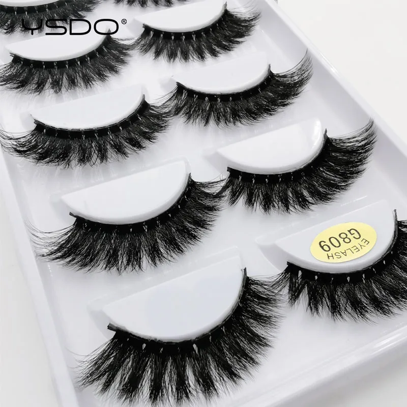 5 пар ресниц из норки YSDO, натуральные длинные накладные ресницы для макияжа, ресницы ручной работы, 3d ресницы из искусственной норки, объемные ресницы
