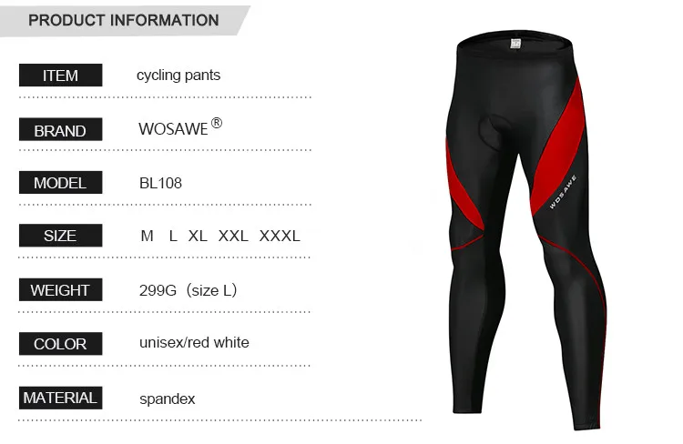 WOSAWE Мужские велосипедные 3D светоотражающие леггинсы с гелевой п...
