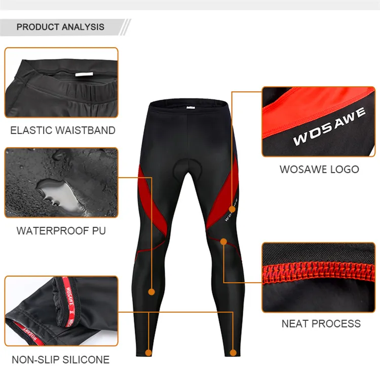 Мужские велосипедные брюки WOSAWE с гелевыми вставками, одежда для горного и шоссейного велосипеда, спортивная одежда, ветрозащитные светоотражающие велосипедные плотные длинные брюки