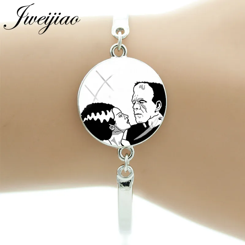 JWEIJIAO традиционный Франкенштейн и его невеста Подвески Браслет со стеклянным кабошоном купол серебряный цвет браслет из цепочек ювелирные изделия FH05