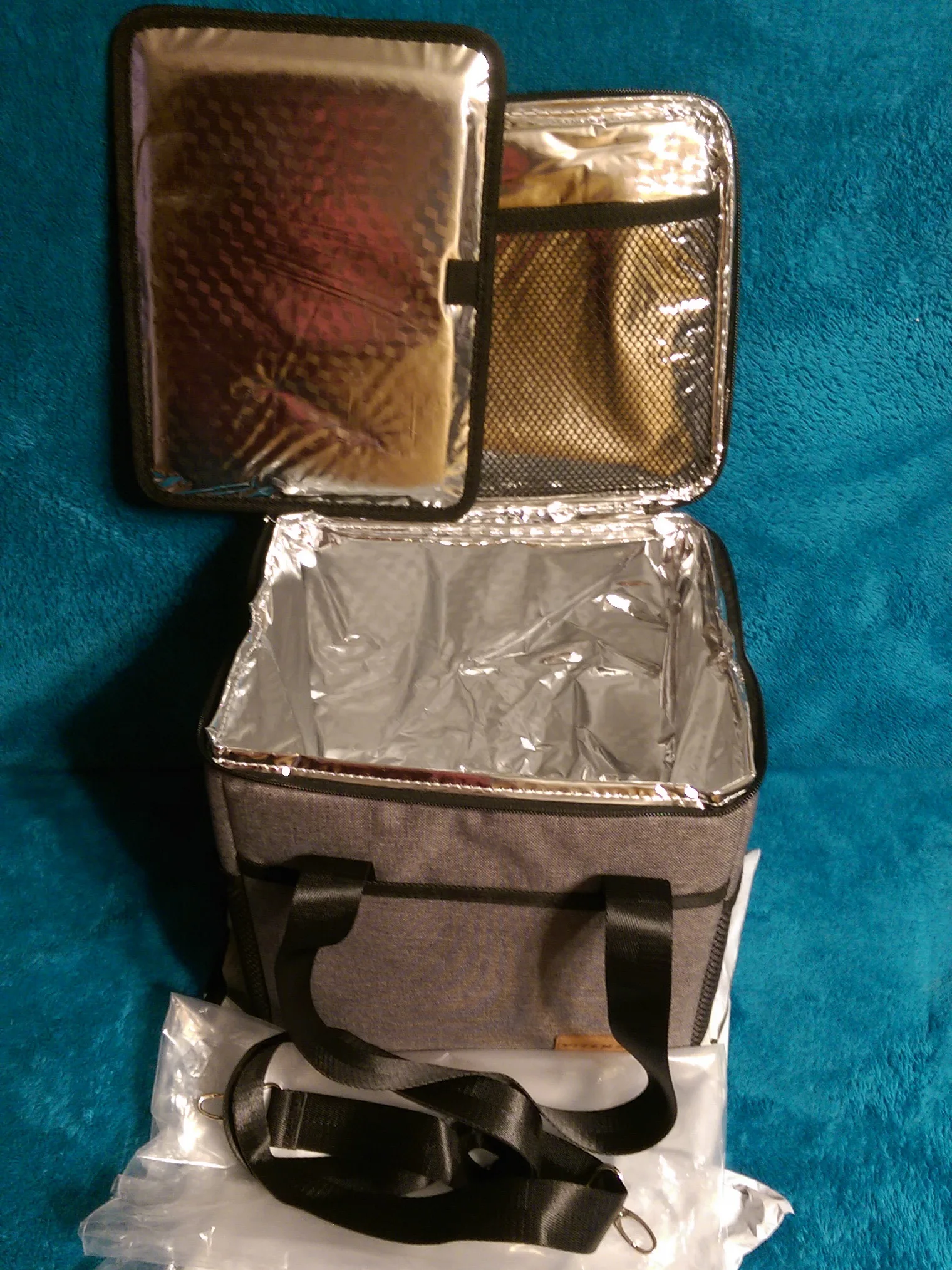 Посылка пришла за две недели. Хорошая и качественная сумка. Толстые стенки. Хорошее качество внутренней фольги и внешнего материала. Плюс есть полиэтиленовый мешок, чтобы ничего не пролилось. Продавцу большое спасибо за качественный товар