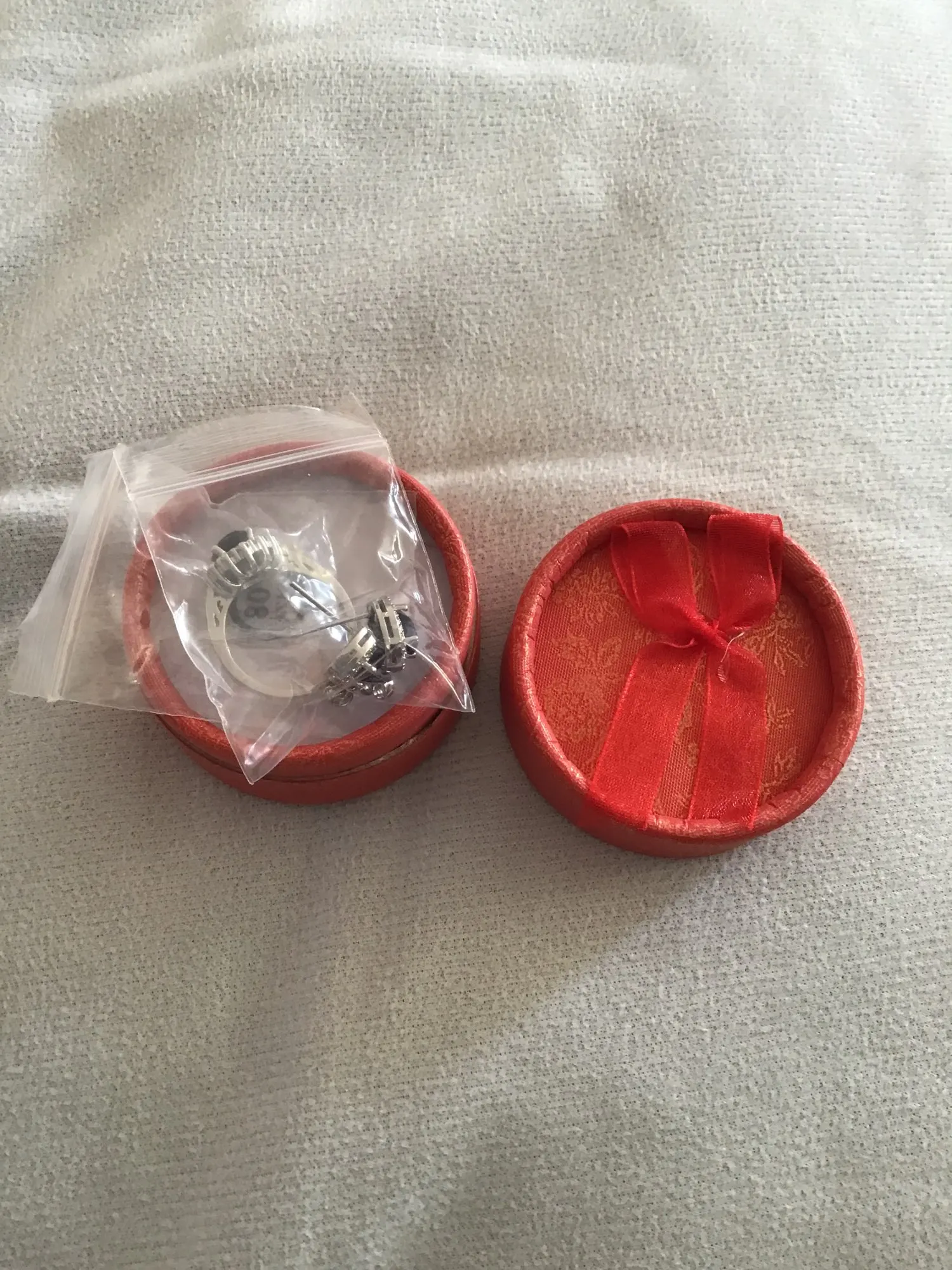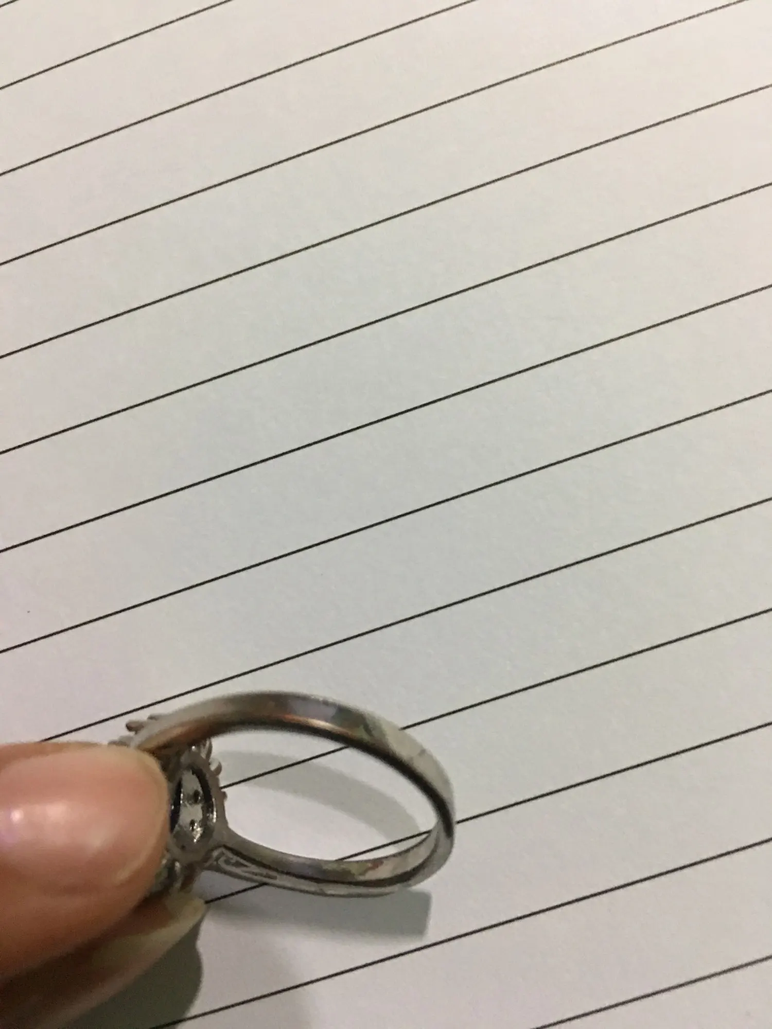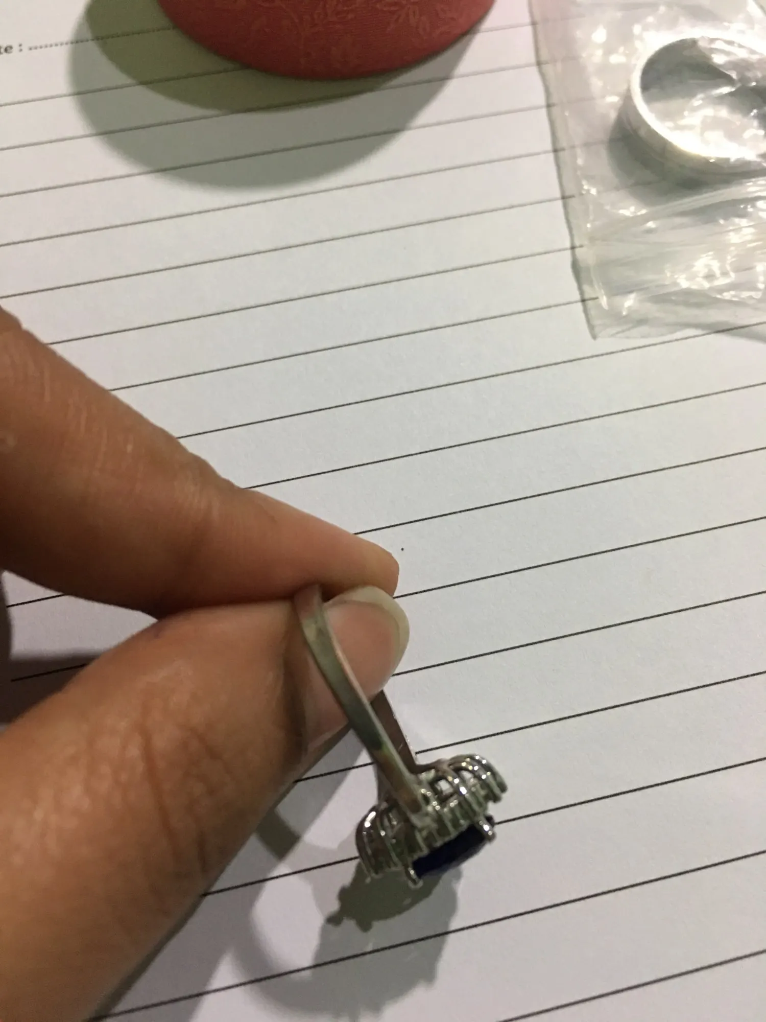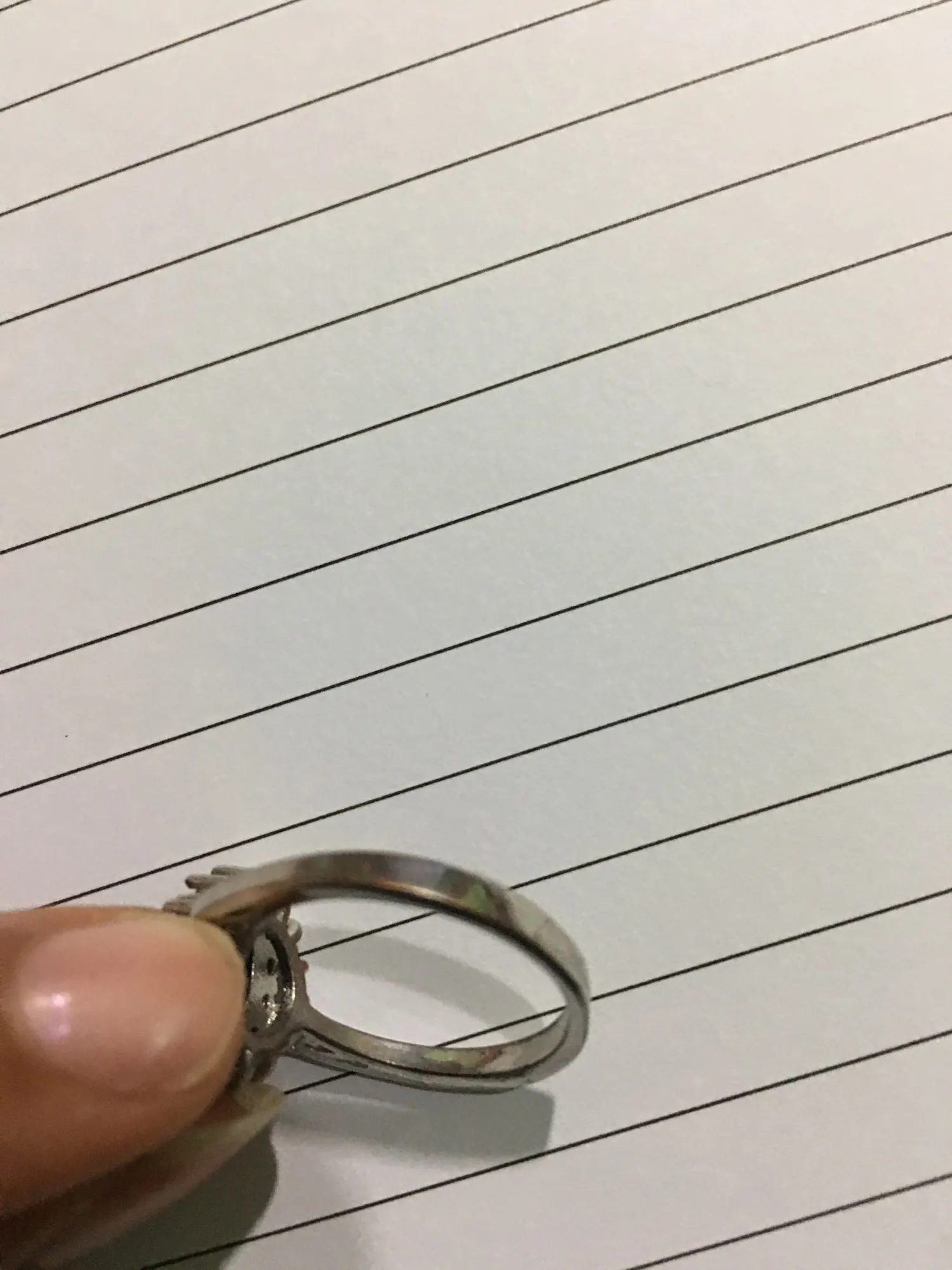 El anillo me quedó gigante n 9 es de acuerdo a la medida de mi país, no elijan la medida 9 si tienen la mano, delgada me baila en el dedo, y no me queda en ninguno de la mano. De hecho se me cae. La medida de mi argolla es 9 . Ojalá pudiera cambiarla. Lo demás es imitación pero , está bien de acuerdo al precio , mi anillo de matrimonio quepa dentro de él , si aprecian en las imágenes.