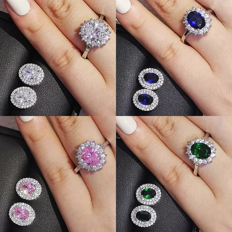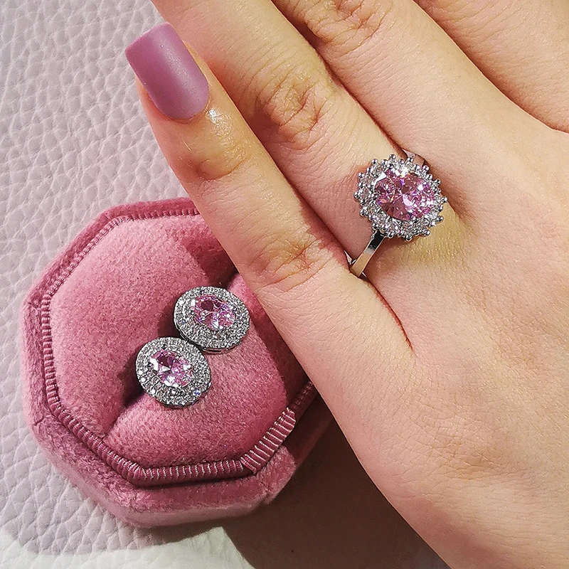 Розовый, синий, розовый, серебряный цвет, турецкий Дубай, свадебный набор ювелирных изделий, овальные кольца, серьги для свадьбы, женские индийские подарки для вечеринок