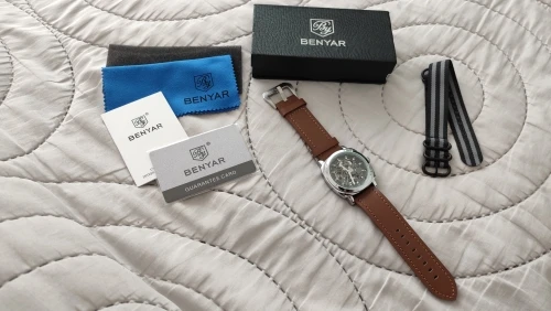 Часы были куплены 11,11 и получены в Буэнос-Айрес, Аргентина 10,01. Часы идут со всем, что вы видите на фото. They included A second gift Mesh (very good quality). Часы выглядят очень хорошо и солидно. Очень хороший вес на запястье. Сетка выглядит довольно искусственно, чтобы быть кожей, но она очень хорошего качества. Несмотря на отсутствие использования, я считаю отличное соотношение цены и качества. I Would buy Another Watch from This Brand Again from This seller. Привет.