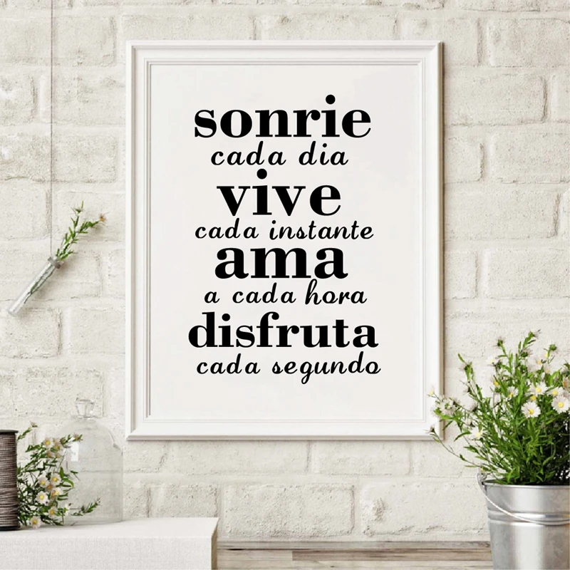 Испанские вдохновляющие цитаты, холст, картина на стену, улыбка, каждый день, живая каждый момент, испанский холст, художественные принты, домашний декор на стену