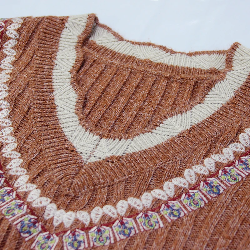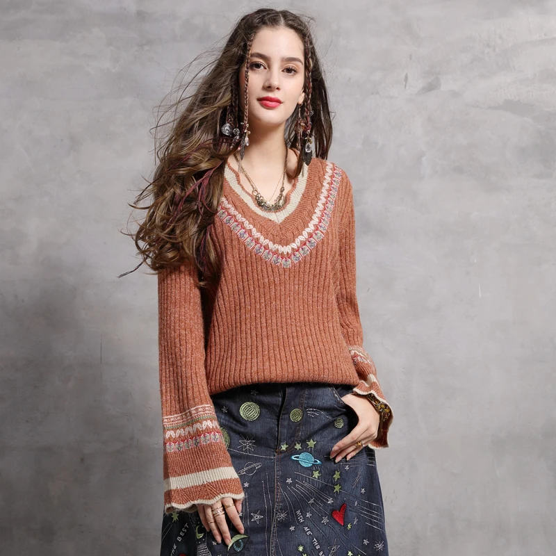 Женский свитер в стиле бохо Yuzi, желтый пуловер из хлопка и шерсти с v-образным вырезом и расклешенными рукавами, модель B9268, 2018