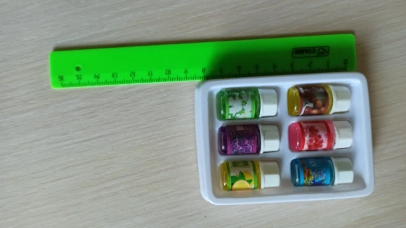 Очень маленькая коробочка, каждый флакончик по 2,5 см. Но запахи потрясающие. Буду заказывать еще. Доставка долгая, но в принципи довольна