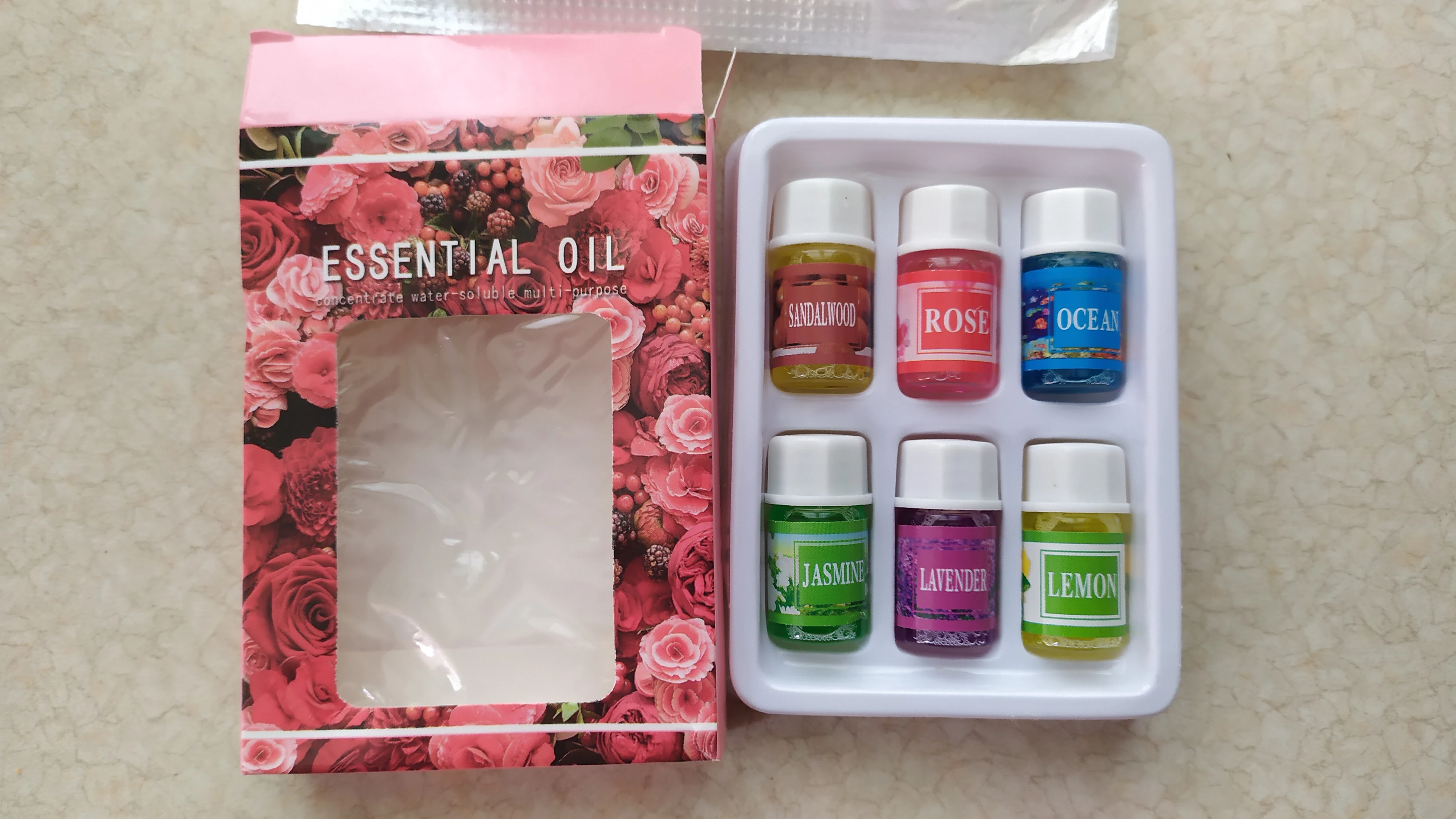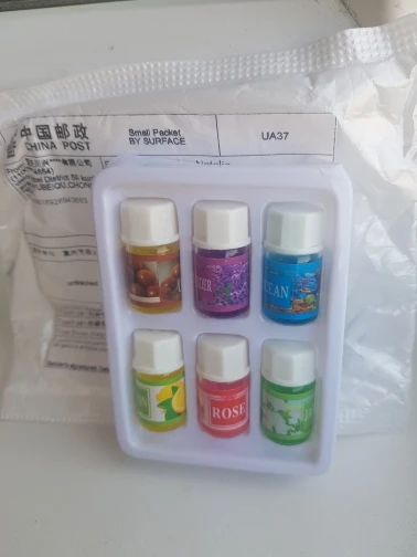 Посылка шла почти два месяца. Бутылочки очень маленькие по 3мл. Запах приятный. Но это никакого не масло - ароматизированная вода. Брали для аромадиффузора.