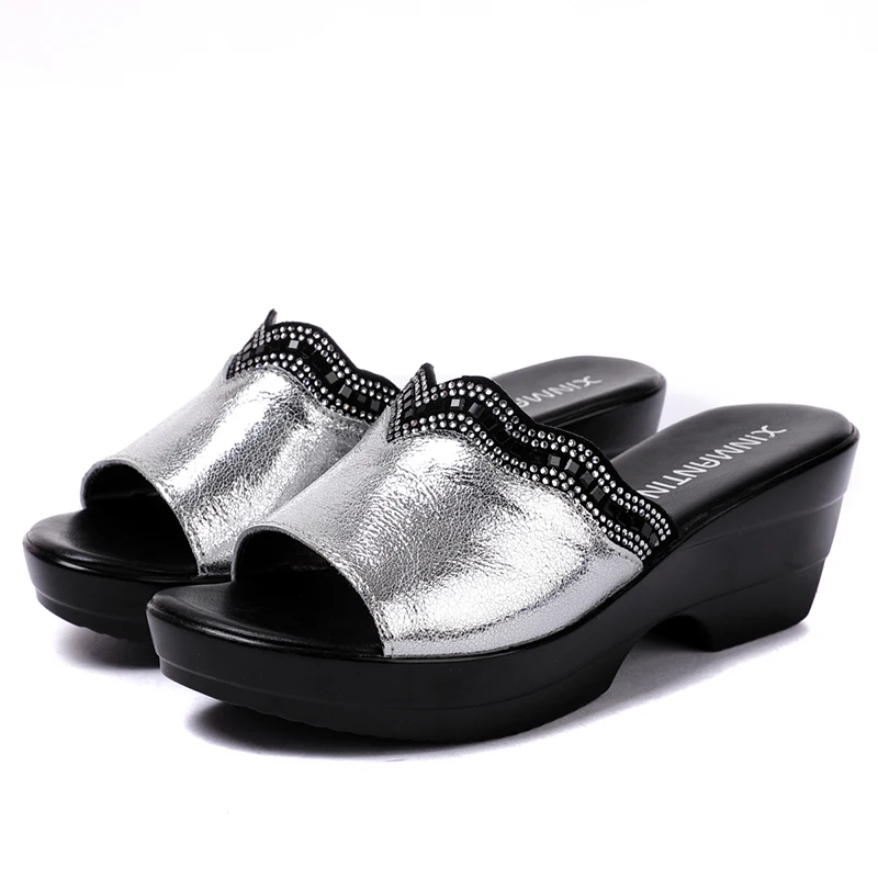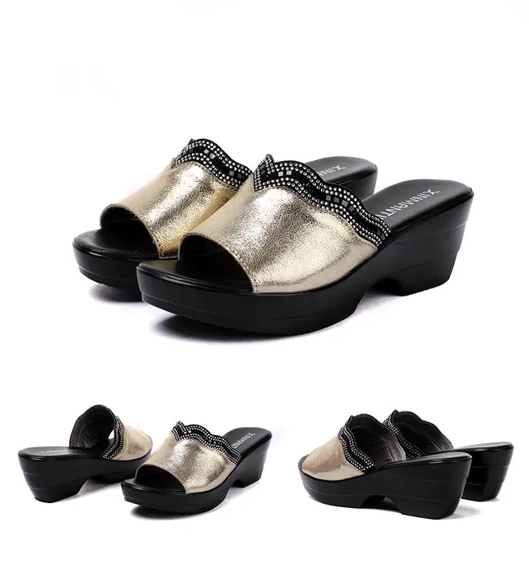 GKTINOO женские тапочки с 2021 дамские летние сандалии для женщин; Женская обувь на высоком каблуке; Модные стразы; Летние туфли