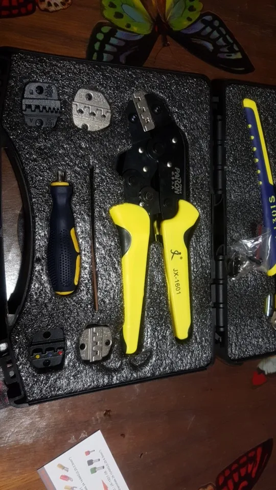 Заказывала с доставкой из России, но продавец связался со мной и сказал, что в России остались только бракованные наборы, и предложил либо вернуть деньги, либо ждать доставку из Китая. Я выбрала доставку. Продавец быстро все отправил, но посылка шла без 8 дней 3 месяца. По качеству инструмента претензий нет, зачищает и обжимает провода хорошо.