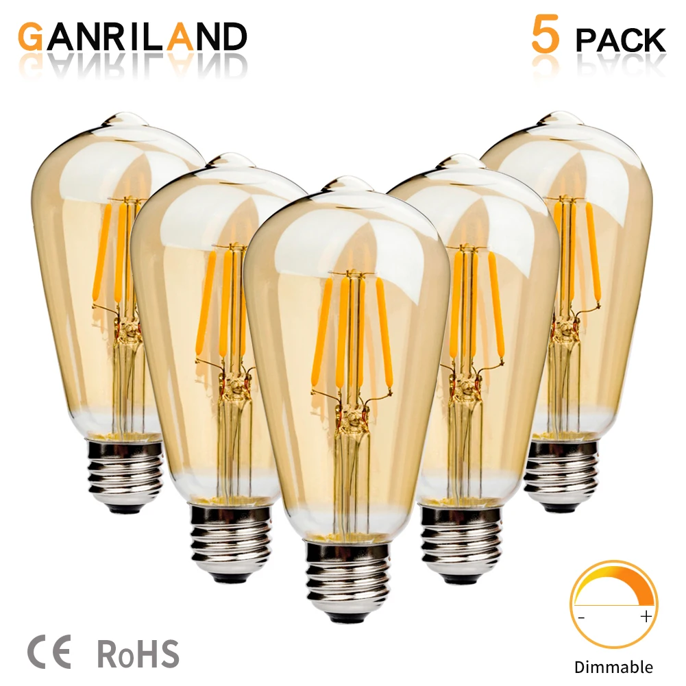 Приглушаемая Ретро лампа Эдисона GANRILAND, светодиодная лампа с нитью накаливания ST64 4 Вт 6 Вт, светильник ПА с золотым покрытием, 220 В, теплый белый, 2200K