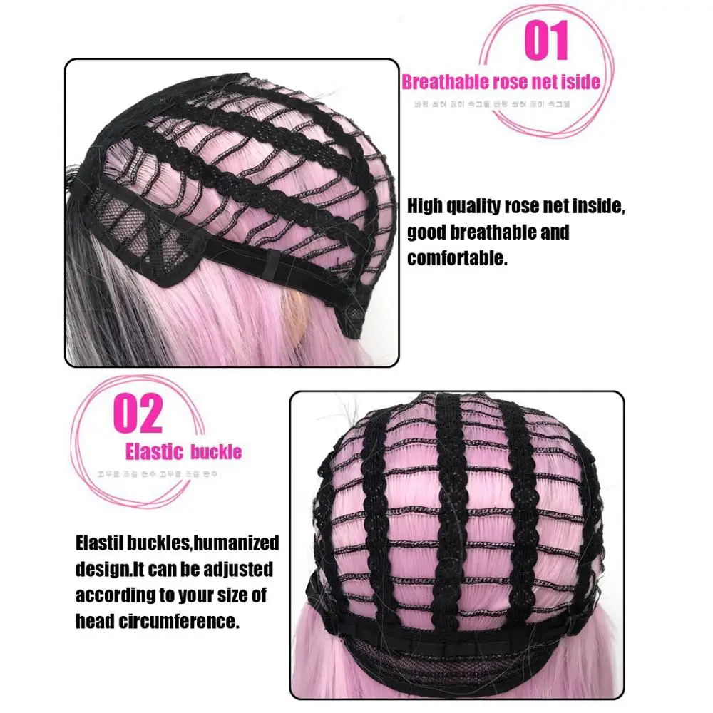 Синтетические короткие волнистые парики Yiyaobess для косплея, 16 дюймов, с челкой, натуральные коричневые, фиолетовые, розовые, с эффектом омбре, женские парики для вечеринки на Хэллоуин
