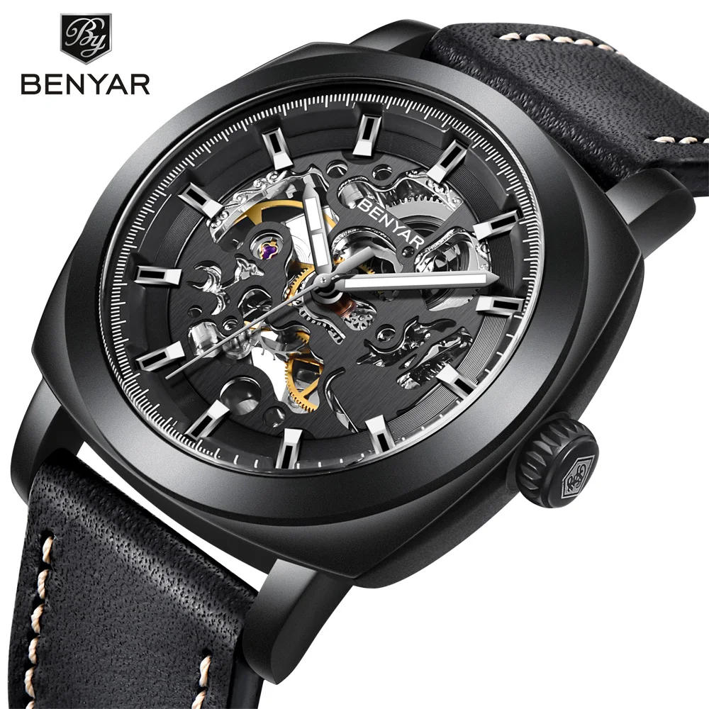 Модные механические часы BENYAR для мужчин, водонепроницаемые класс...