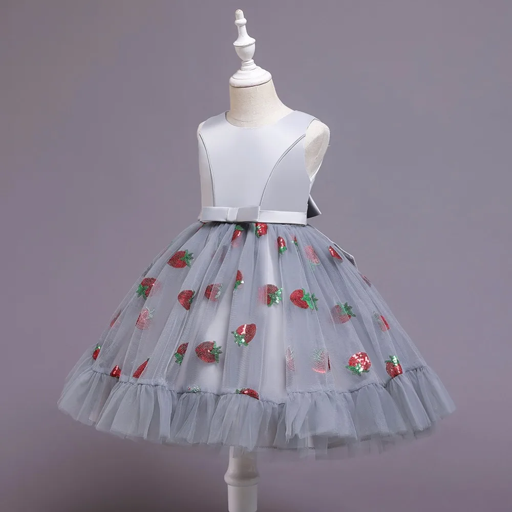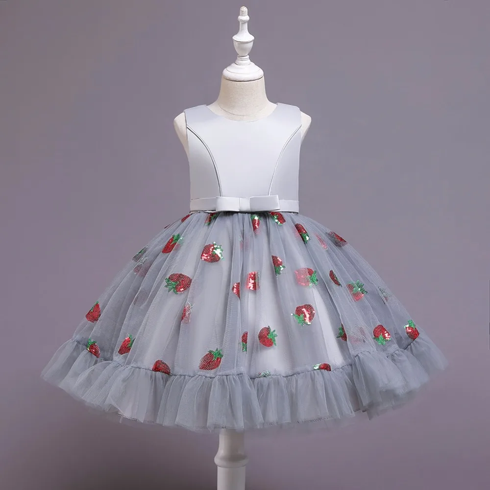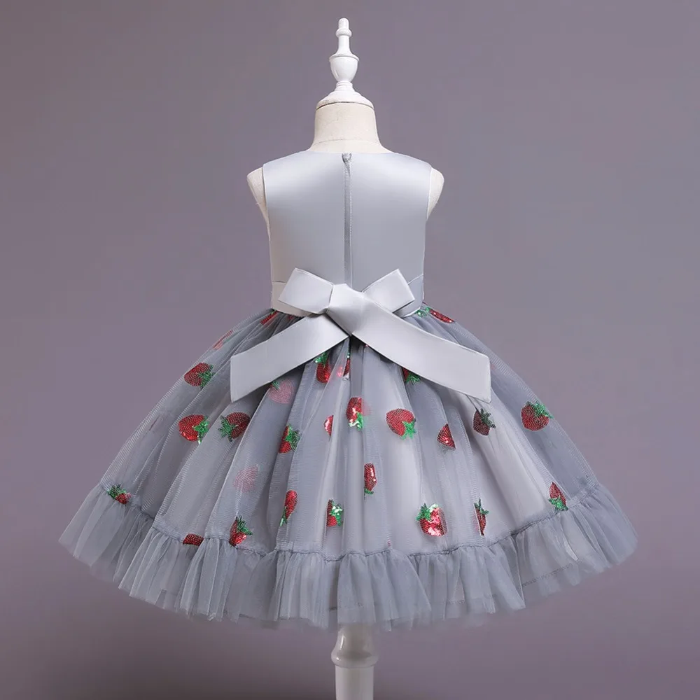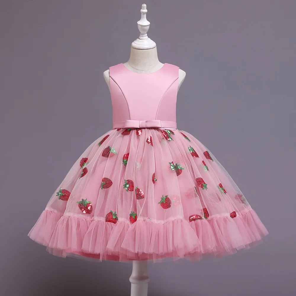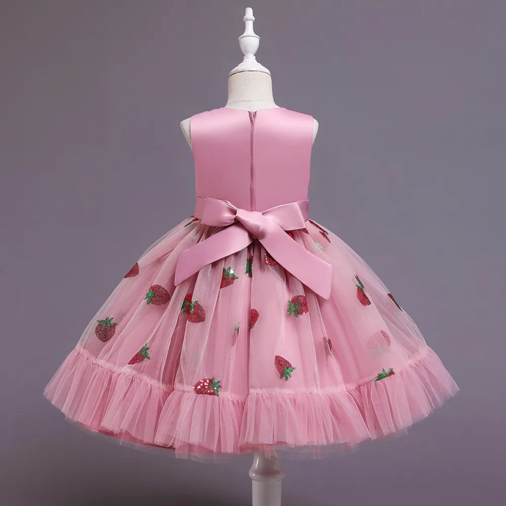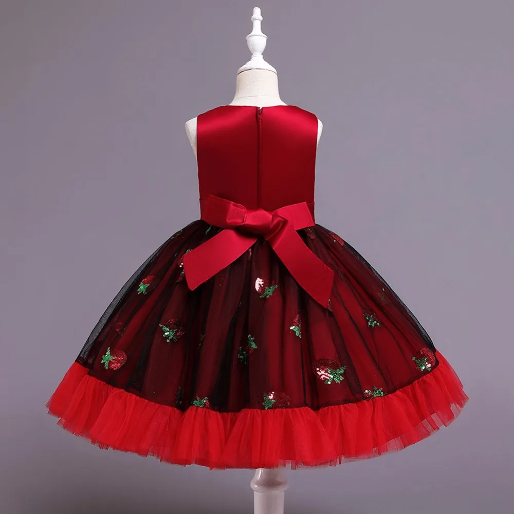Новое рождественское платье принцессы с клубничкой для девочек платья без рукавов с большим бантом платье для дня рождения кружевное элегантное банкетное платье