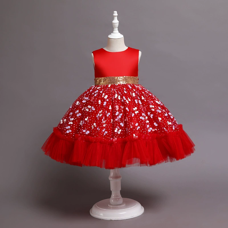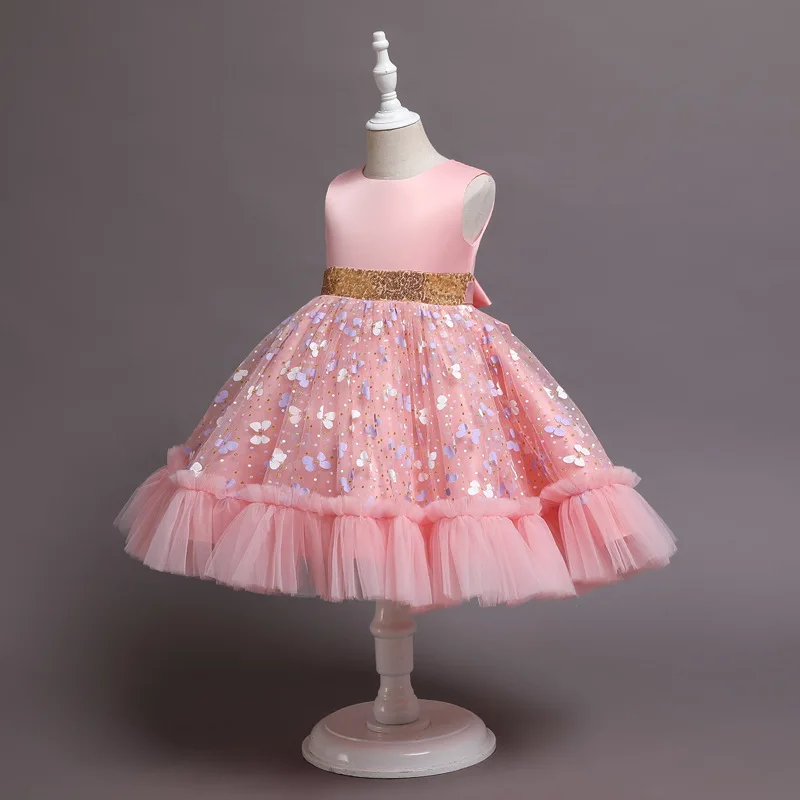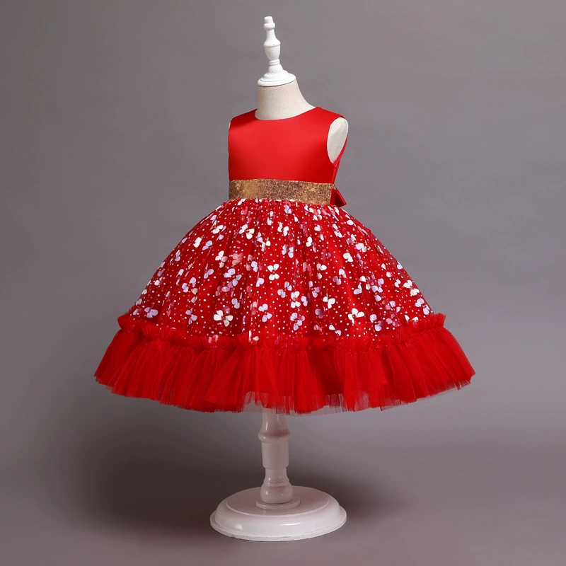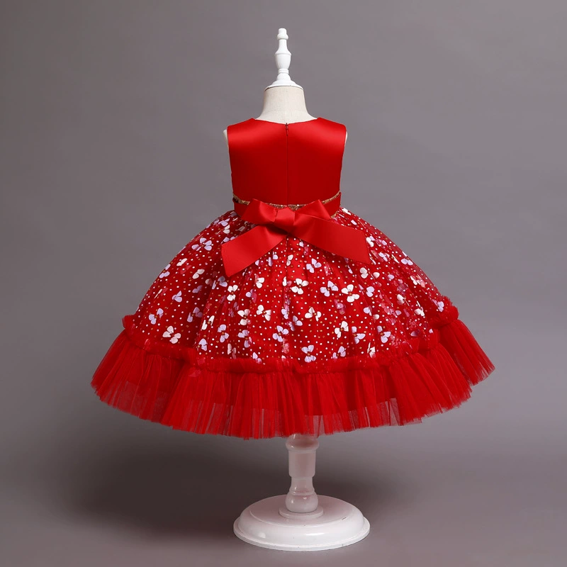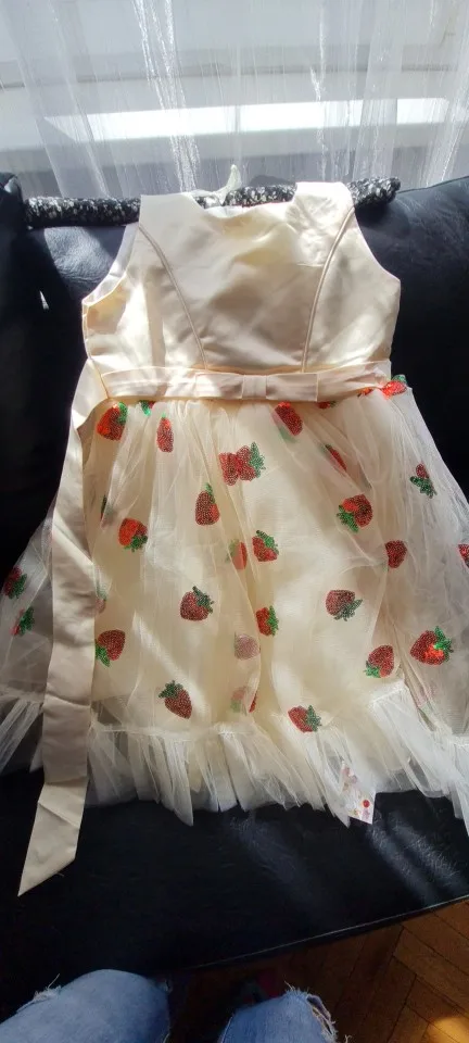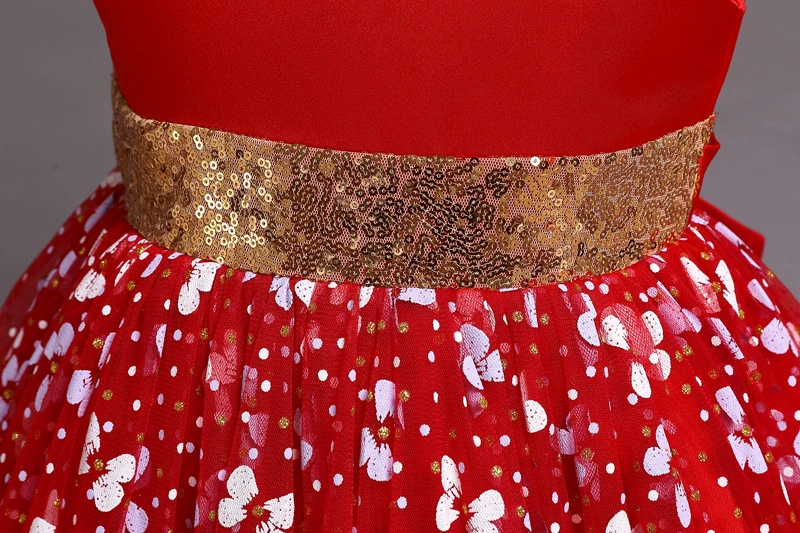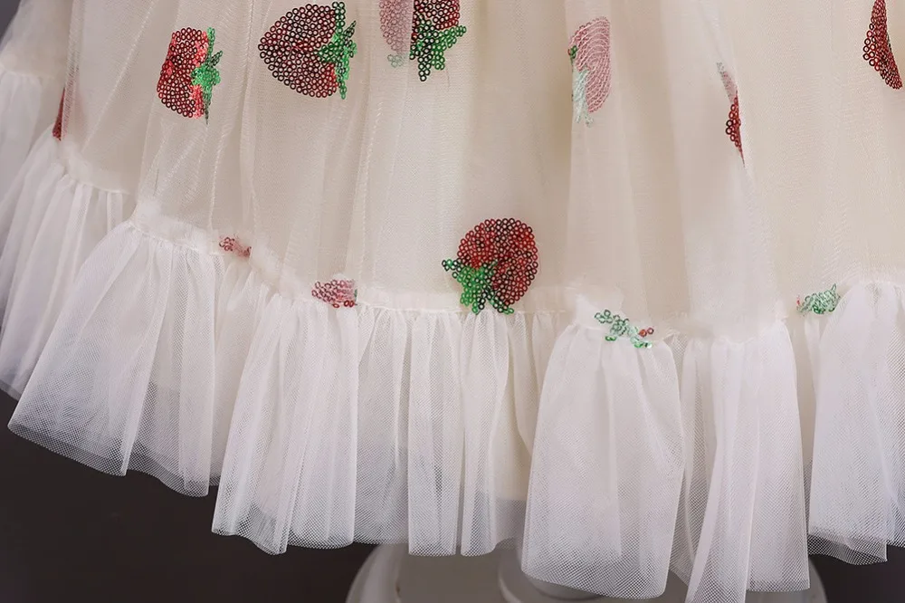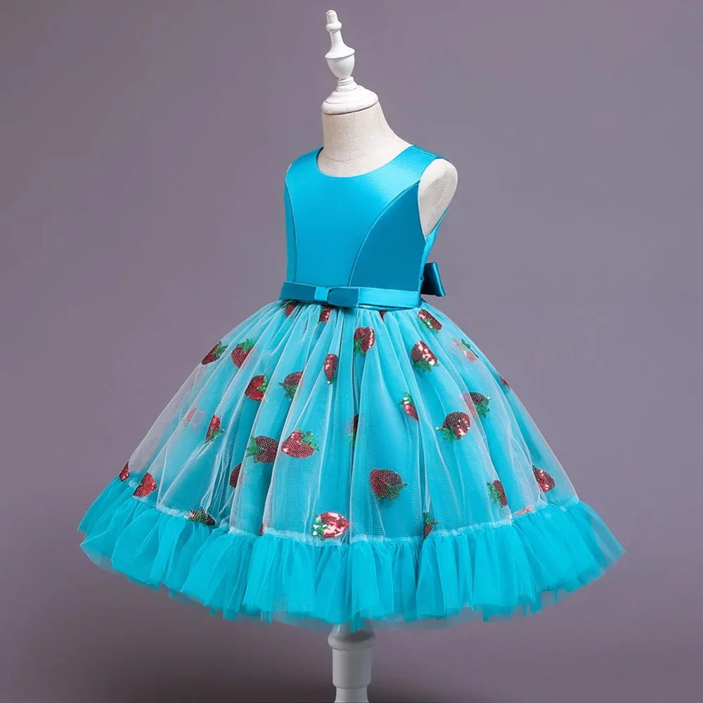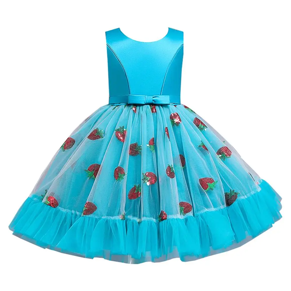 Новое рождественское платье принцессы с клубничкой для девочек платья без рукавов с большим бантом платье для дня рождения кружевное элегантное банкетное платье