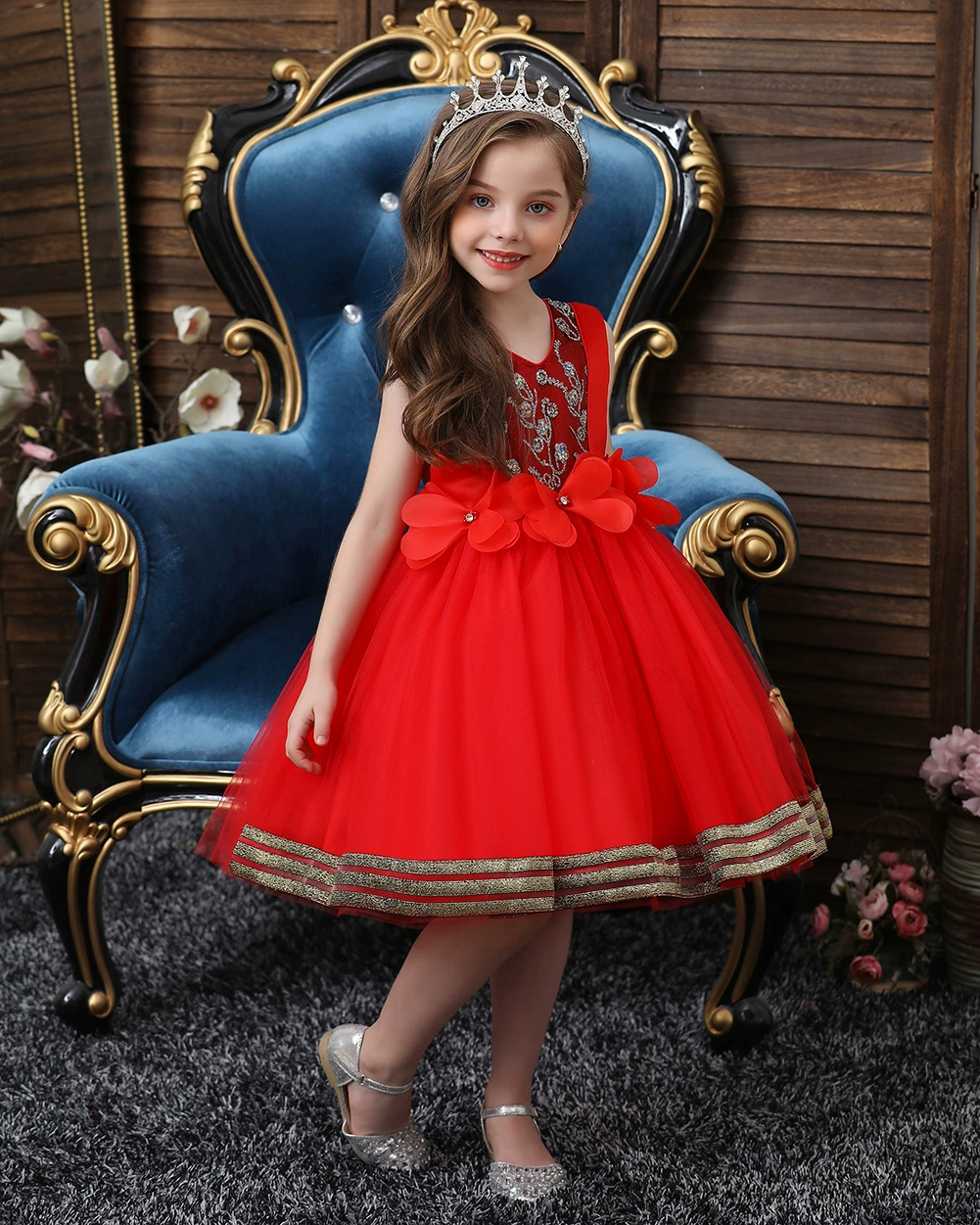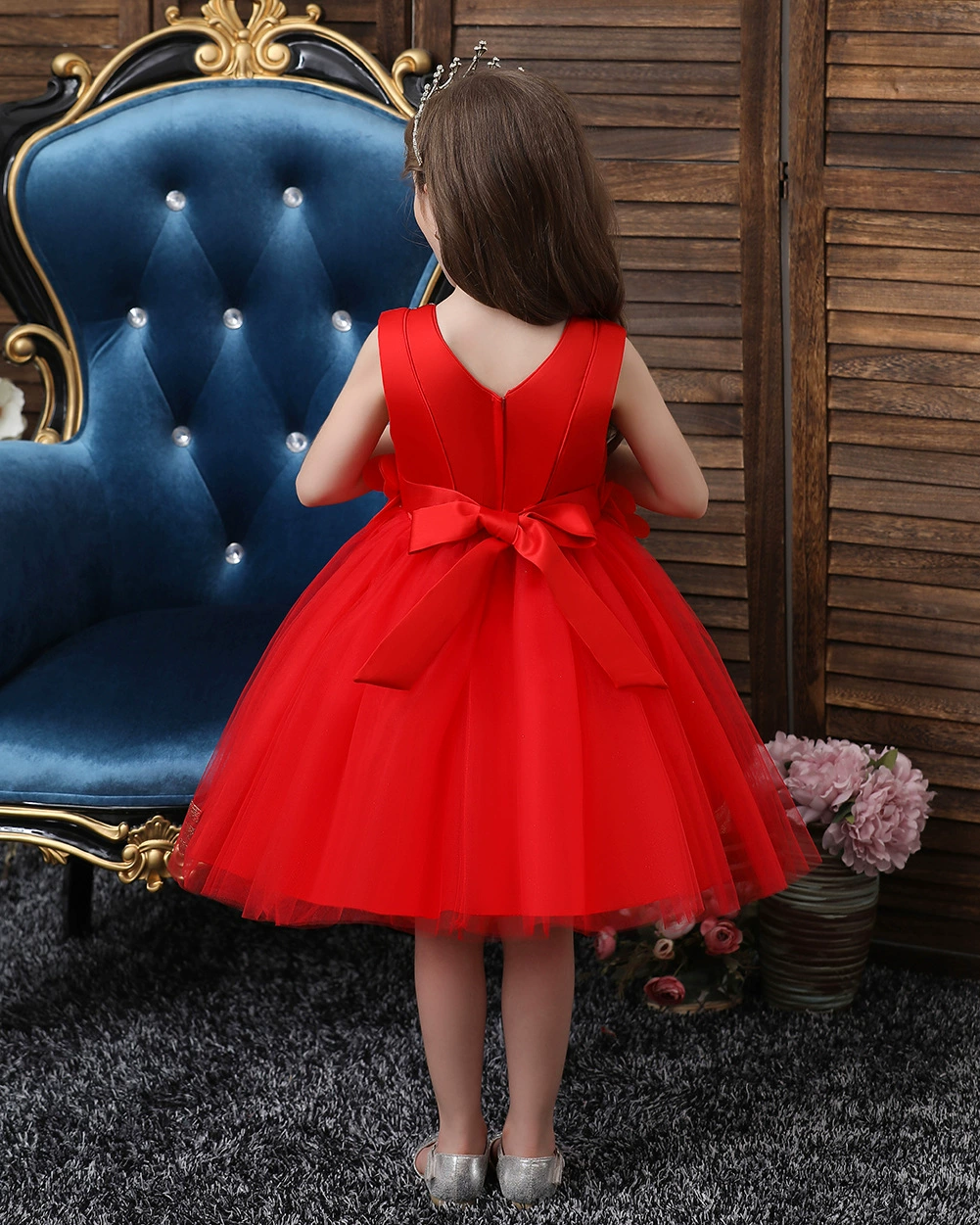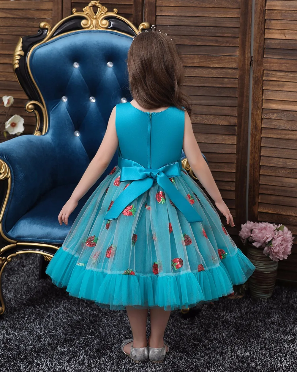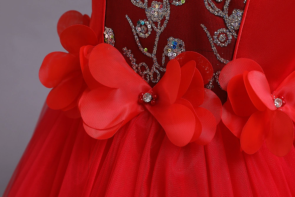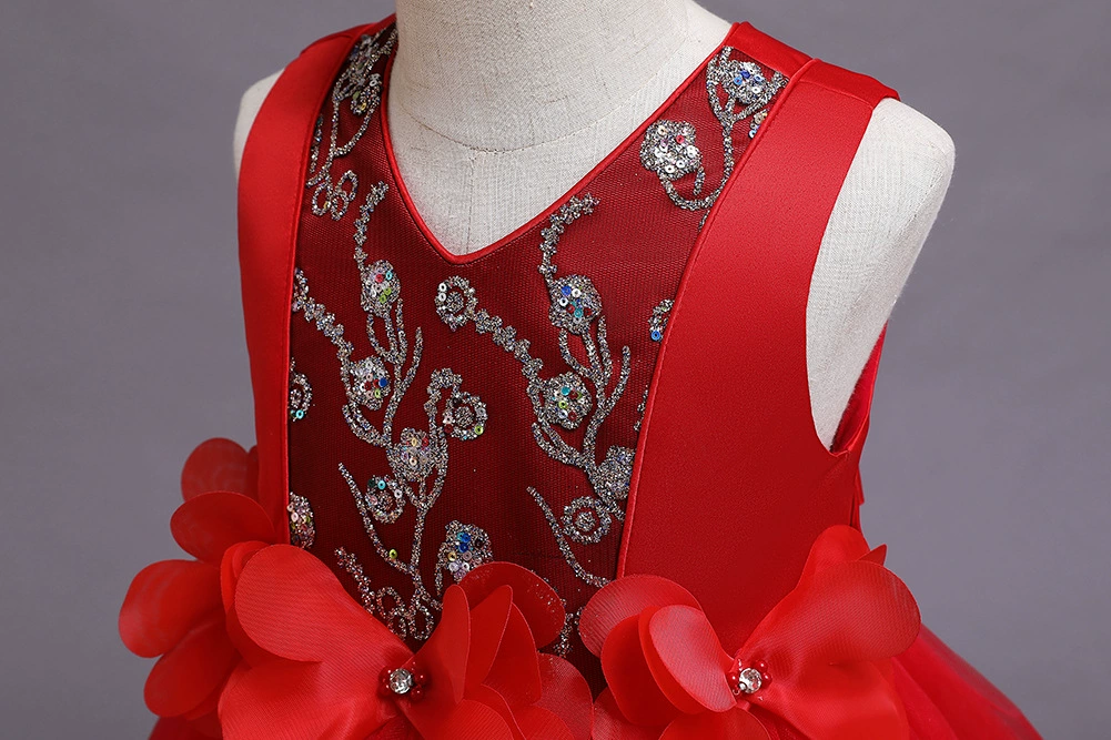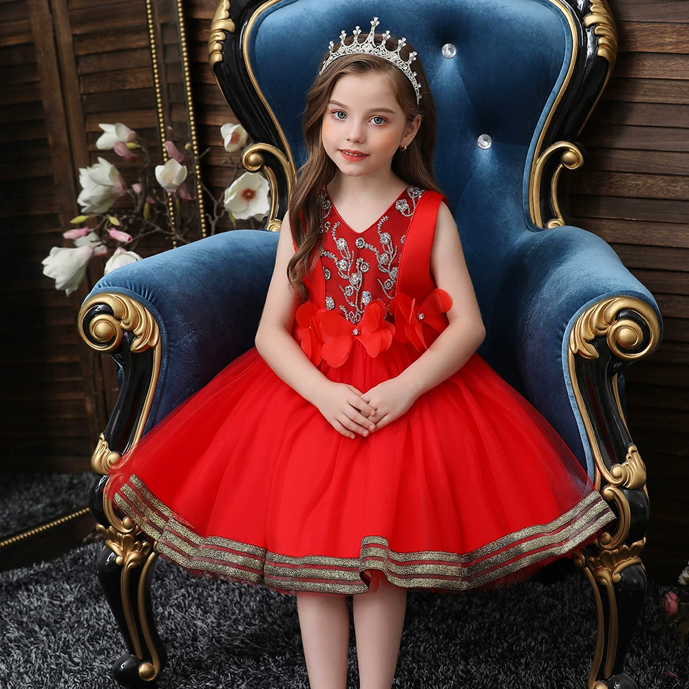 Новое рождественское платье принцессы с клубничкой для девочек платья без рукавов с большим бантом платье для дня рождения кружевное элегантное банкетное платье