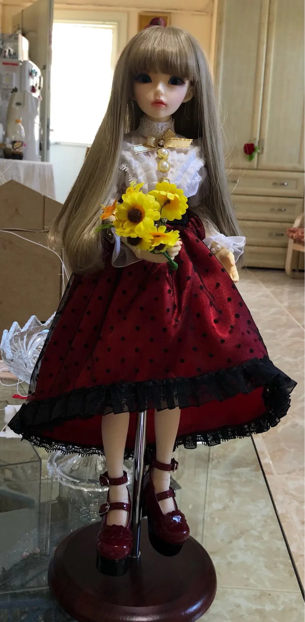 Получила через 16 дней. Достойный продавец! Люблю делать покупки в этом магазине, так как получаю большое удовольствие и от покупки , и от общения с продавцом . Ответ на сообщения получаю мгновенно. Упаковано всегда отлично и качество товара хорошее. Костюм очень красивый. Пошит качественно. На моей кукле 1/4 Селин с бюстом D сидит великолепно, без придирок. Я очень довольна.