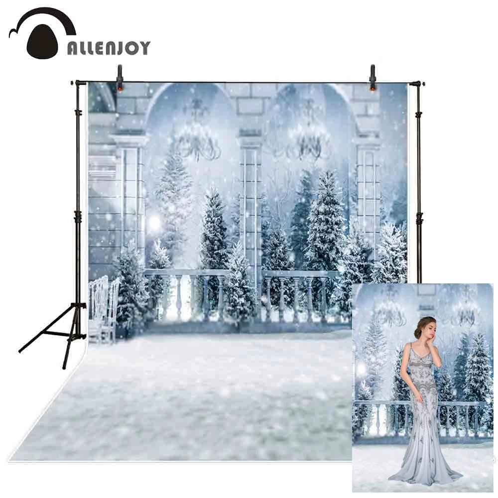 Фон для фотосъемки Allenjoy с изображением зимней страны чудес замка балкона снега Рождества леса фотобудка для фотосессии