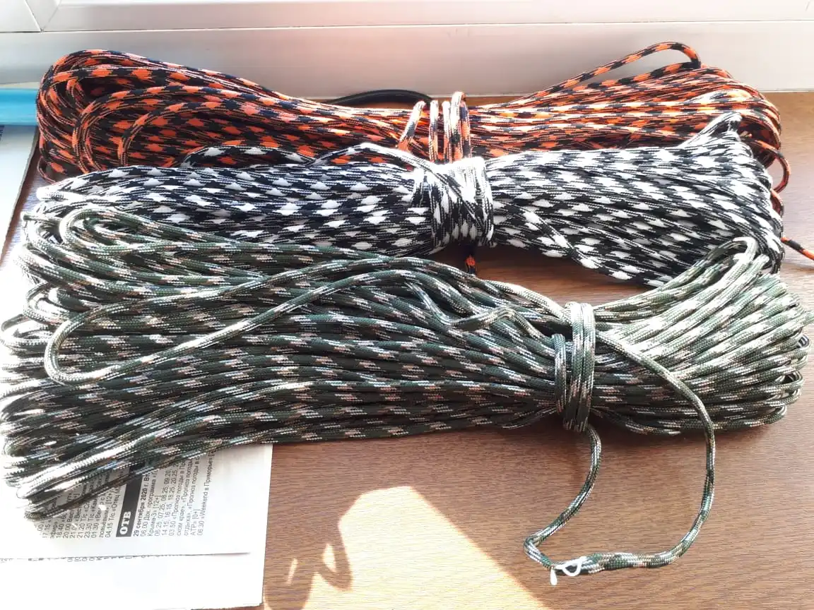 Хороший паракорд, довольно мягкий, но нитки не торчат. Длина, какую заказывала, пришло за +/- месяц. Спасибо!