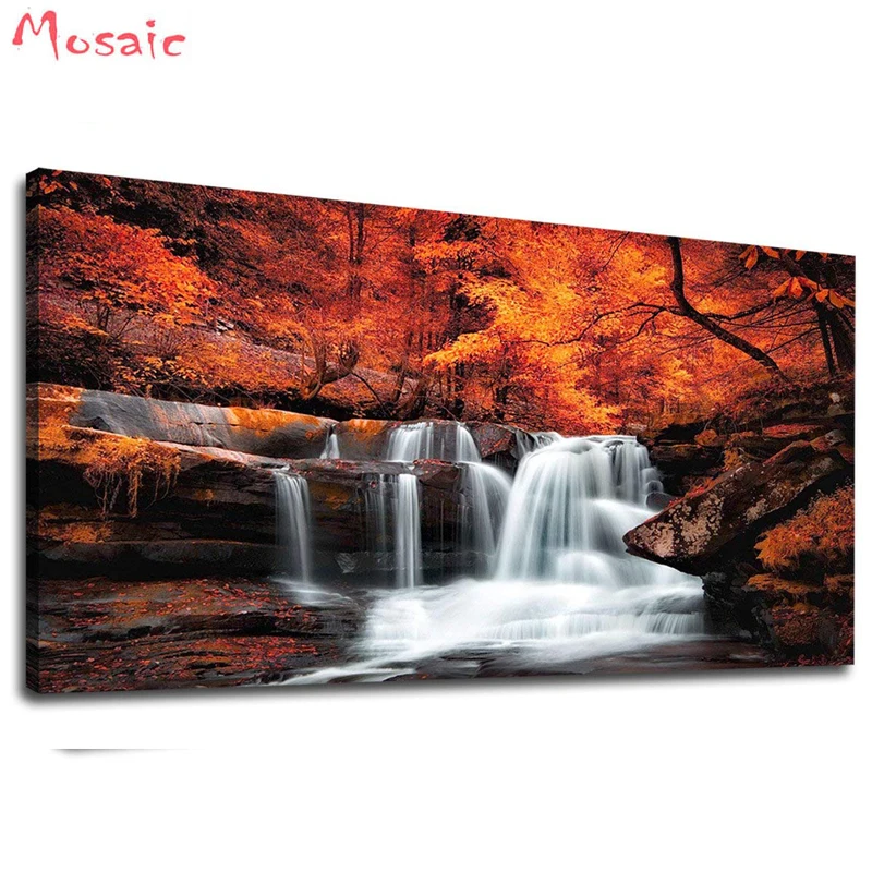 Набор для вышивки крестом водопад, красный лес, алмазная вышивка, мозаика для осени, речное дерево, домашнее украшение