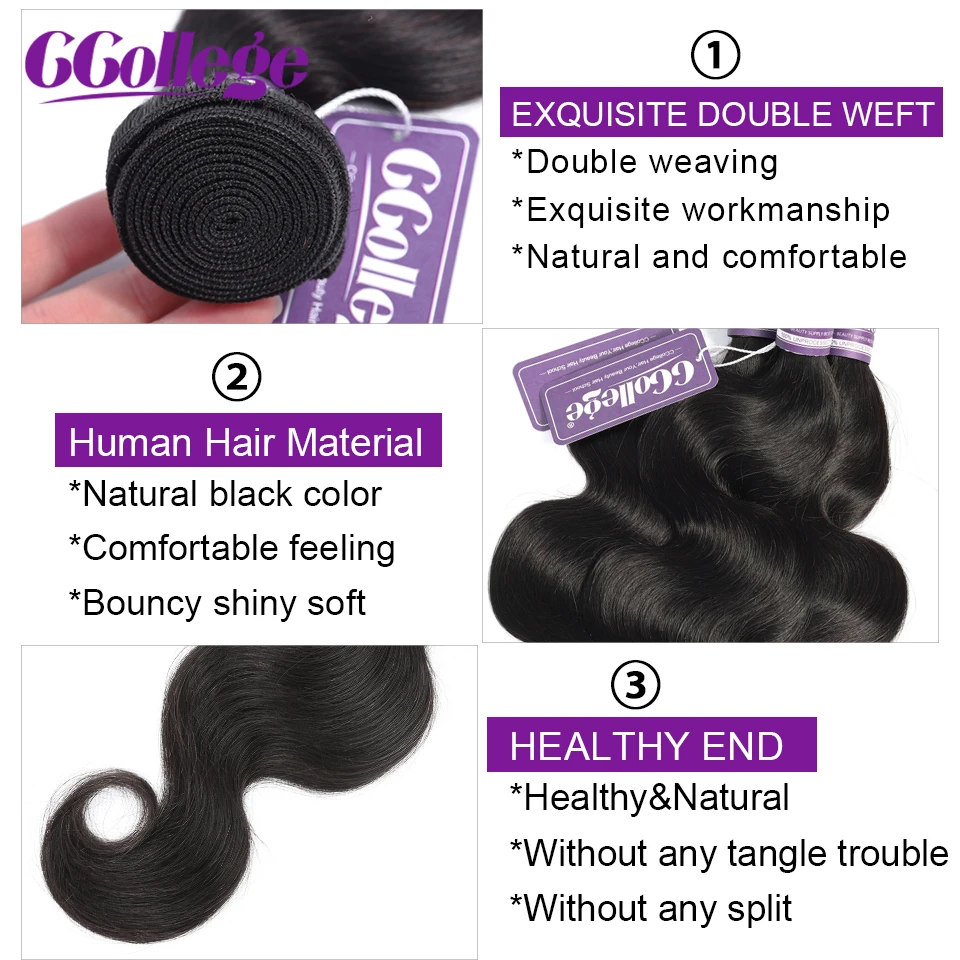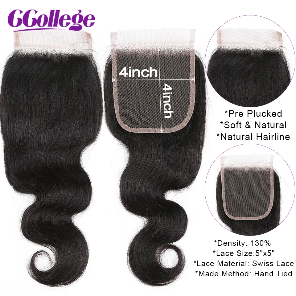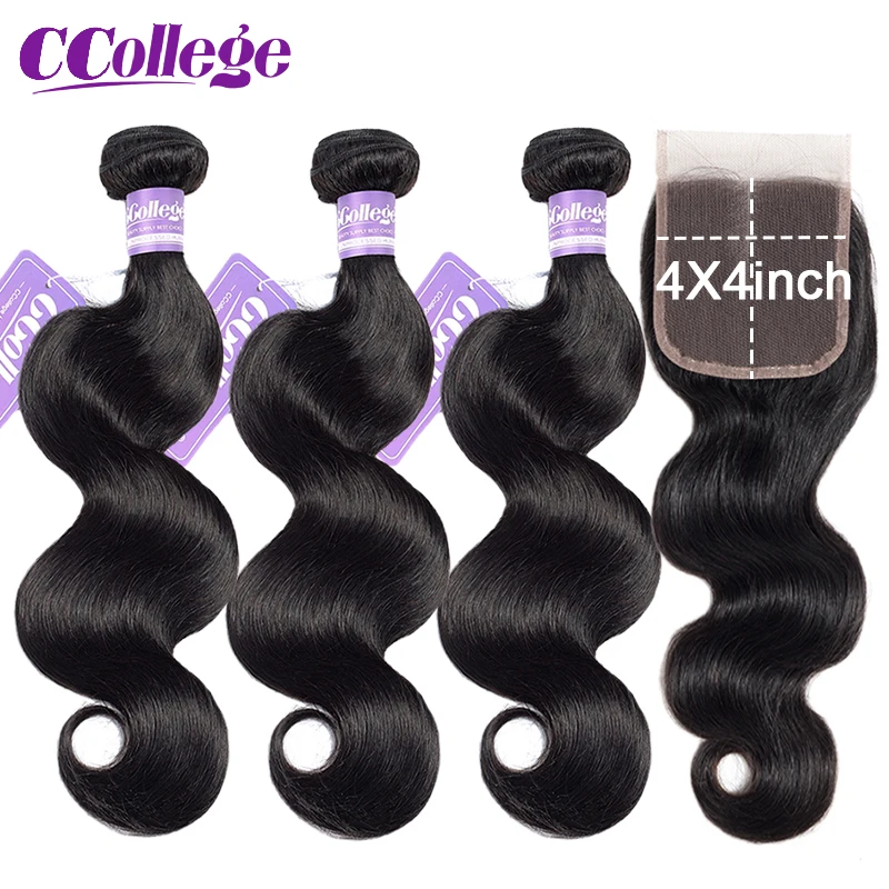 Бразильские волнистые человеческие волосы cколледж 3 пряди с закрытием, двойные пряди, не Реми, пакеты естественного цвета пряди