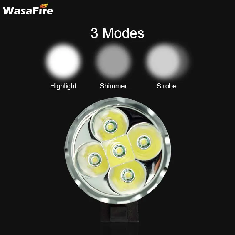 Фонарь велосипедный WasaFire, 5 светодиодов, 18650 лм