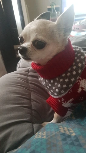 Свитерок размера М на чихуахуа 2.3 кг (28 см длина спины) мал.