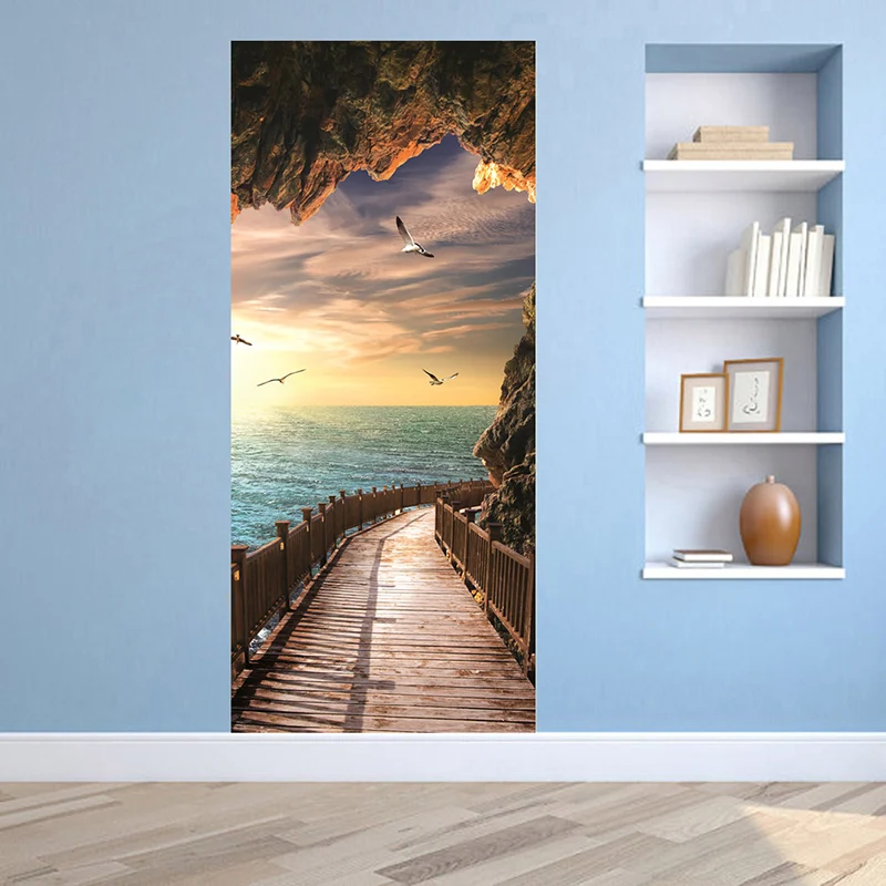 Настенные ПВХ обои, 3D наклейки на дверь, морской пейзаж, природа, фотообои, креативные самоклеящиеся двери, для гостиной, спальни