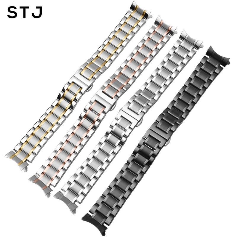 Металлический ремешок STJ из нержавеющей стали для наручных часов, брендовый Браслет Черного, серебристого, розового золота, 13 мм 14 мм 16 мм 18 мм 20 мм 22 мм 24 мм