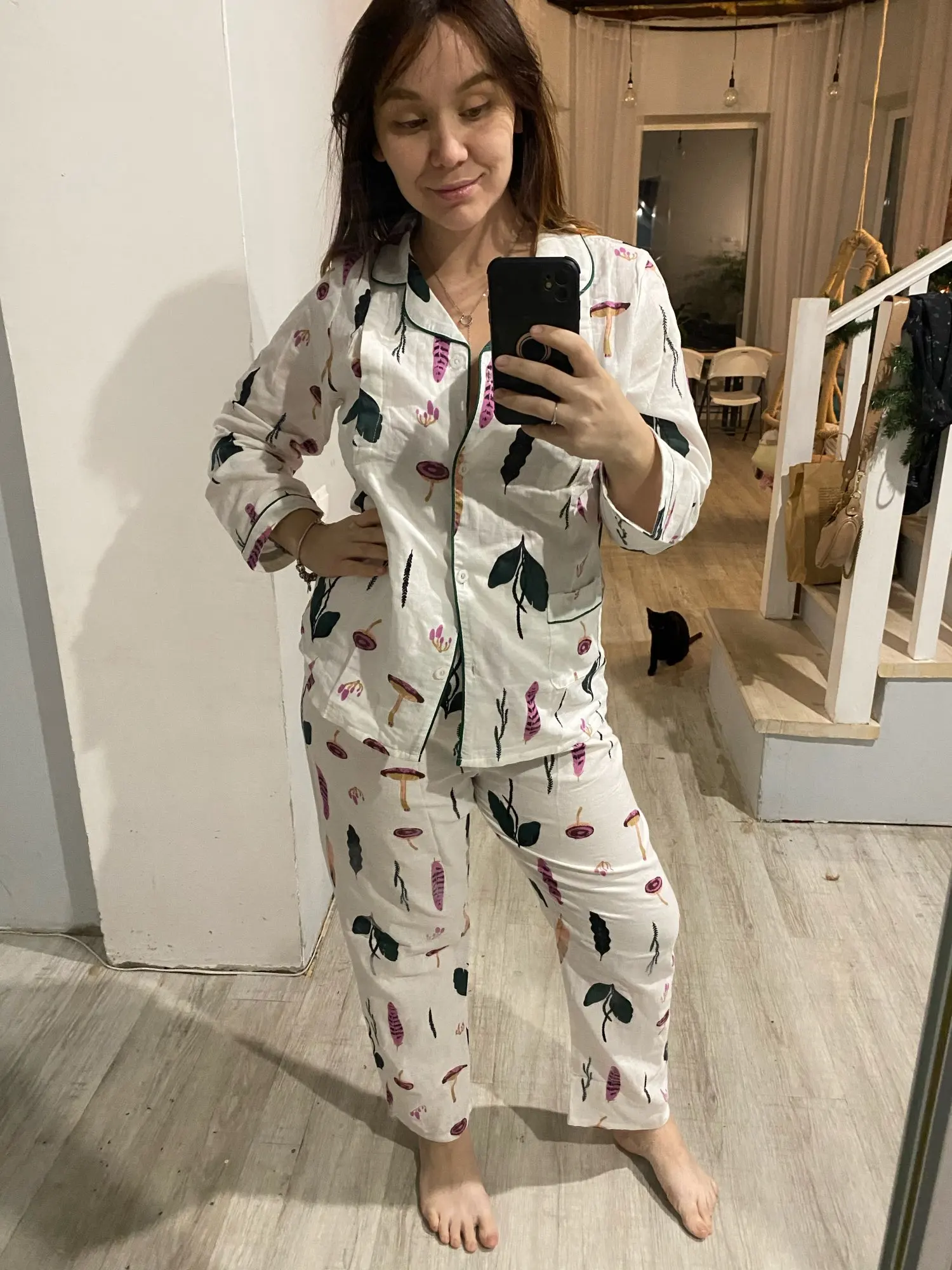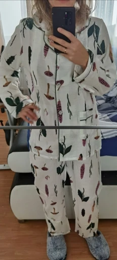 Пижама прекрасная. Мне подошла идеально, обычно ношу S, заказала M. Но мой рост 158, и мне она отлично по длине, если девушка выше, видимо, брюки будут карго. И ещё бонус, есть отверстия на пуговицах для кормления малыша. Я не знала, но мне как раз пригодилось! Идеально для кормящей матери.