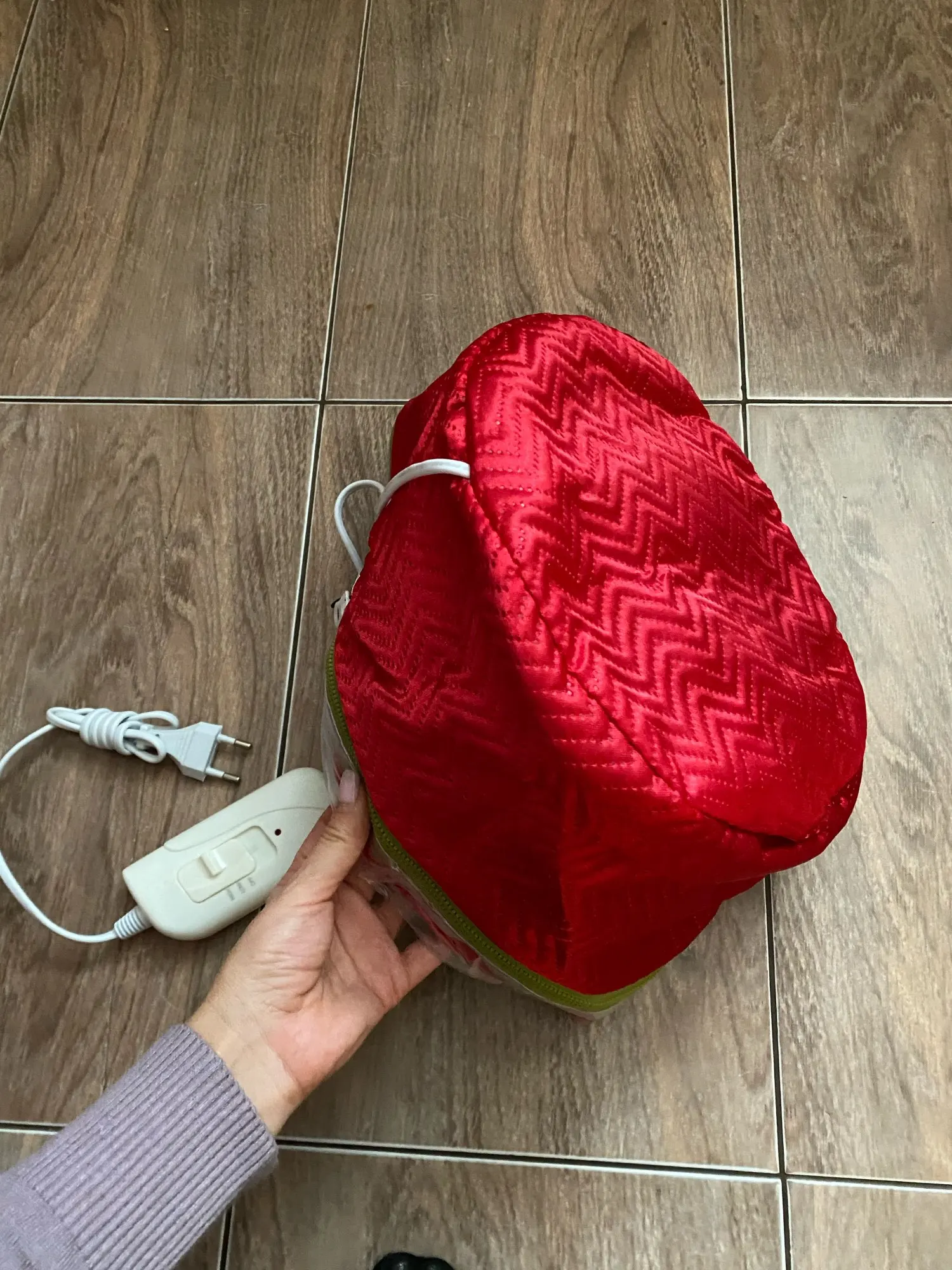 Термошапочка супер! Очень хорошего качества, два режима подогрева.. Внутри плотный полиэтилен на молнии(можно отстегнуть помыть). Очень быстрая доставка. Продавца рекомендую