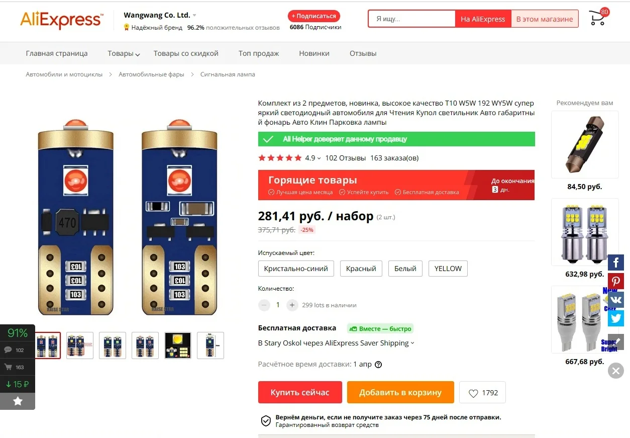 Тех машинах где бортовой компьютер контролирует ток лампочки этот лед лампочка не подойдёт. У меня opel astra g 1998г этот лампочка не подошёл. Продавцу спасибо отправил быстро.