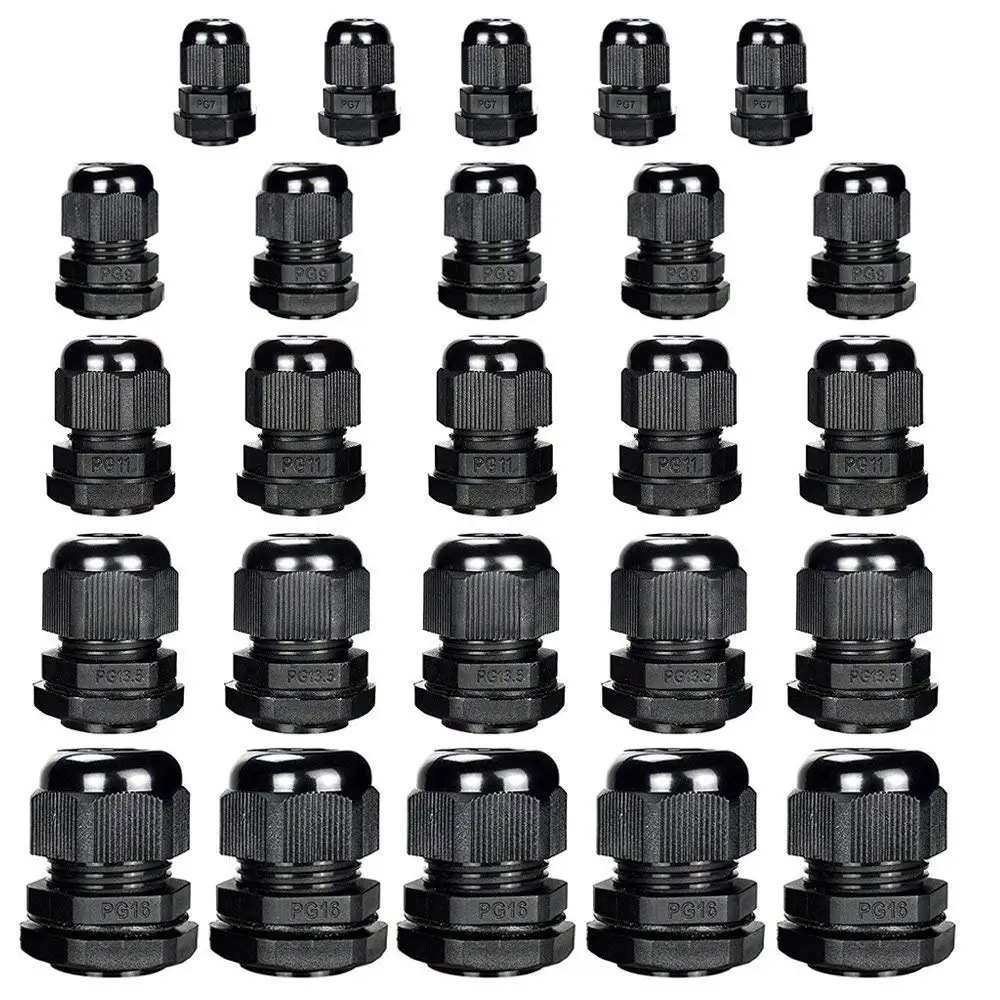 25 шт. нейлоновые кабельные вводы, водонепроницаемые соединения кабеля, пластиковые водонепроницаемые PG7, PG9, PG11, PG13.5, PG16