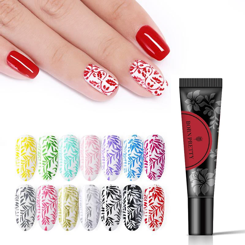 Гель-лак BORN PRETTY для стемпинга ногтей, 8 мл, черный, белый, серебристый, золотой отмачиваемый Гель-лак для начинающих