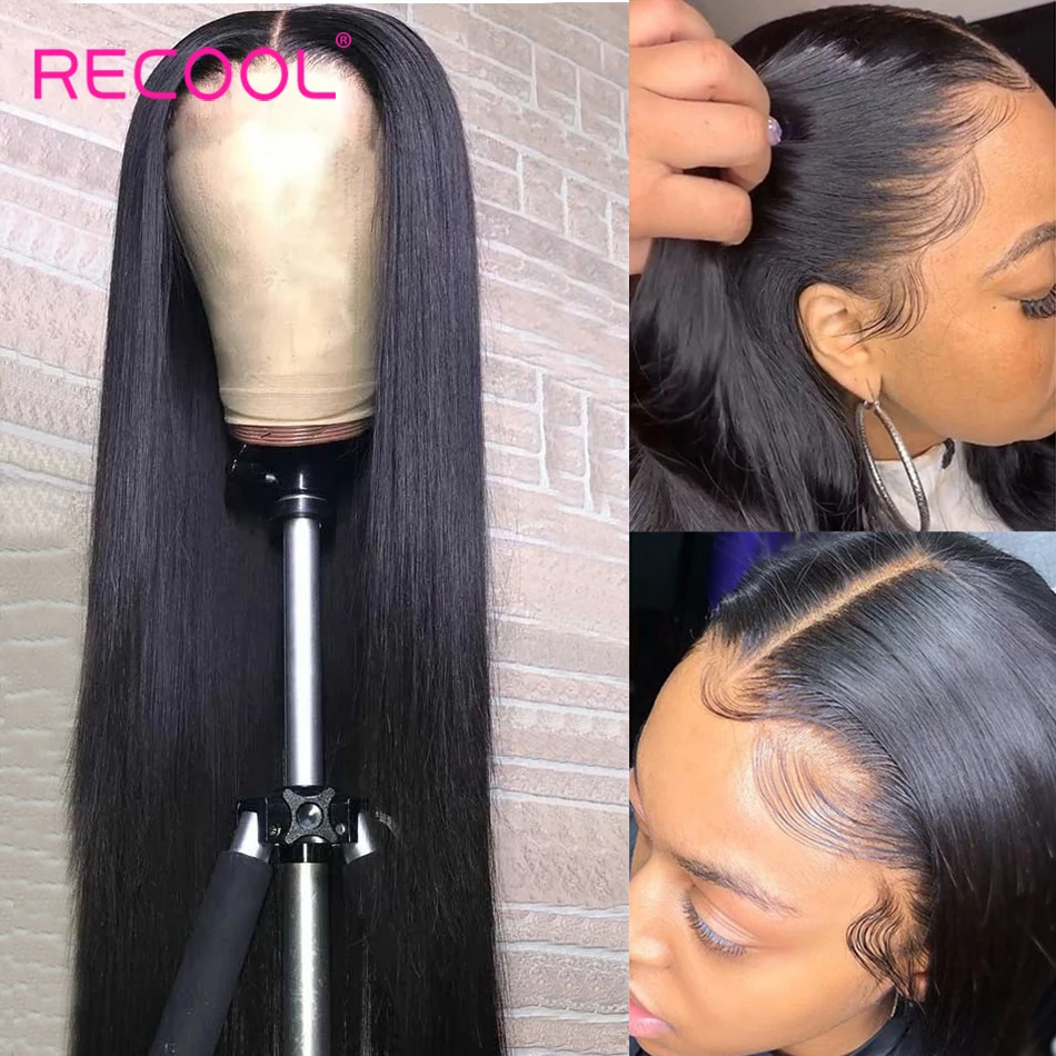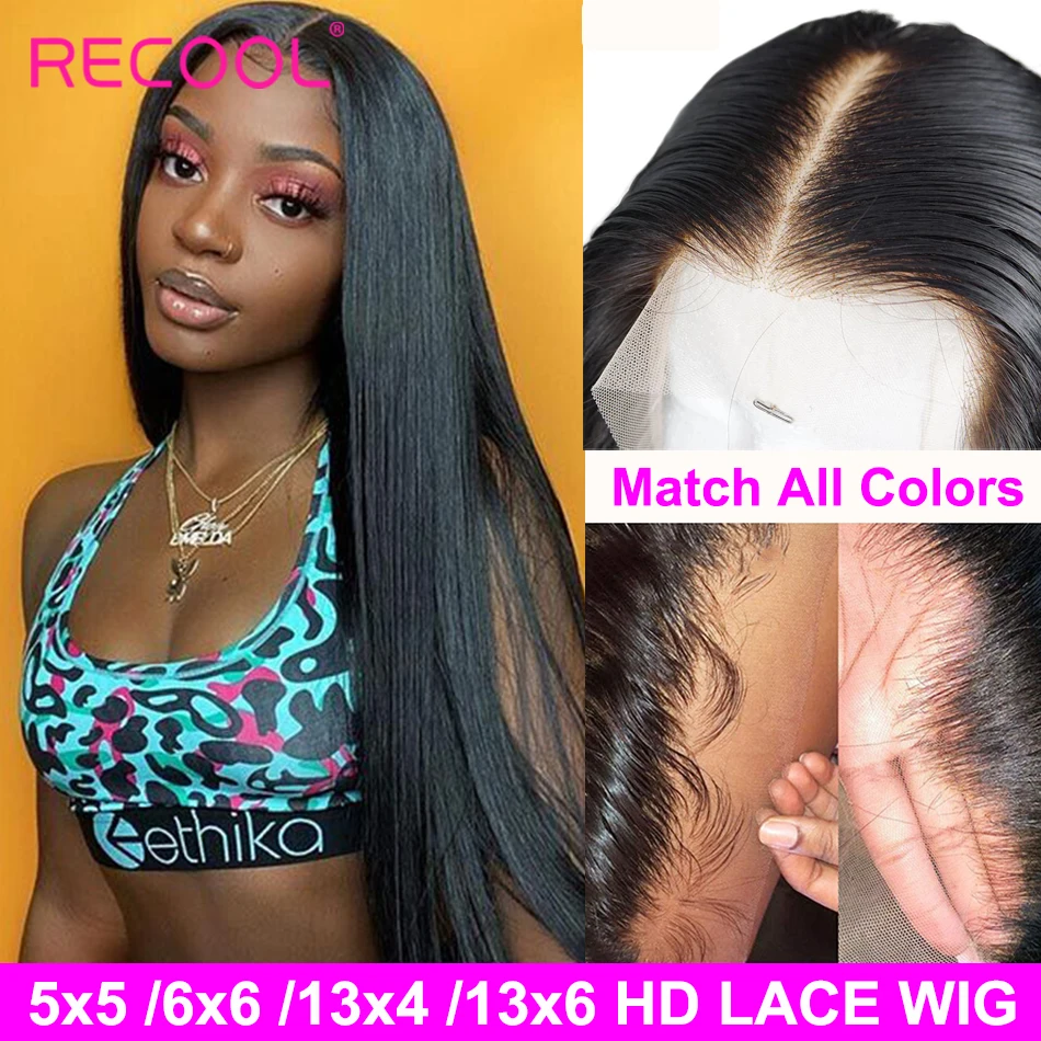Recool HD прозрачный кружевной парик, прямые кружевные передние человеческие волосы, парики 180 200 250 плотность, предварительно выщипанный бразильский HD кружевной передний парик