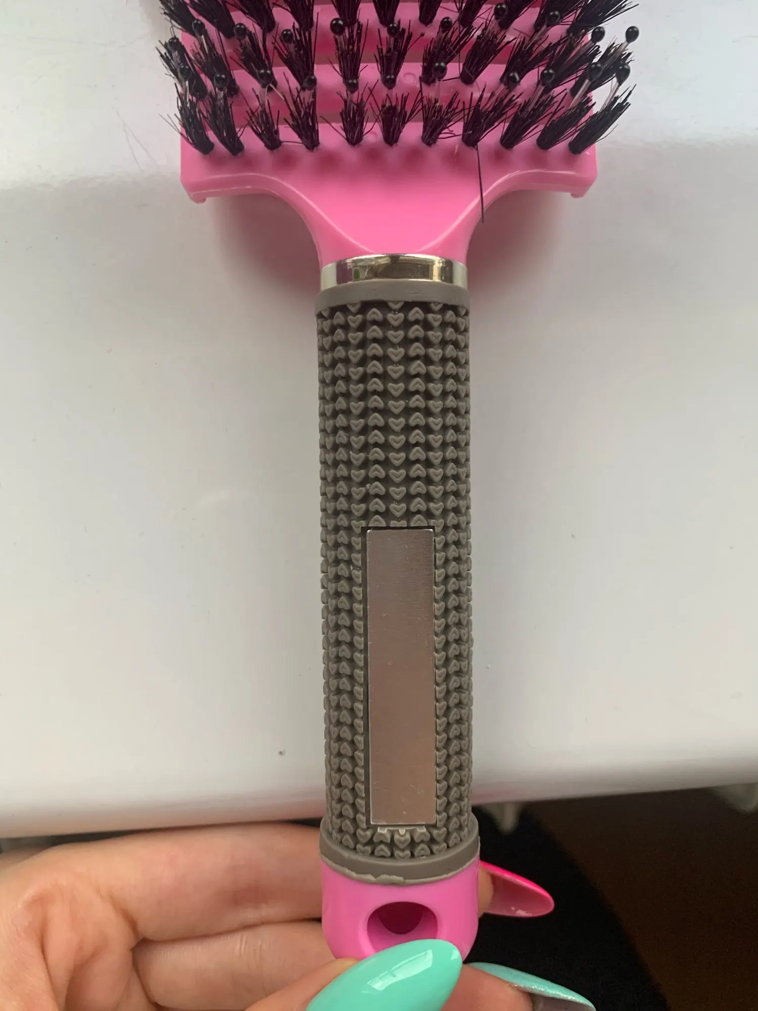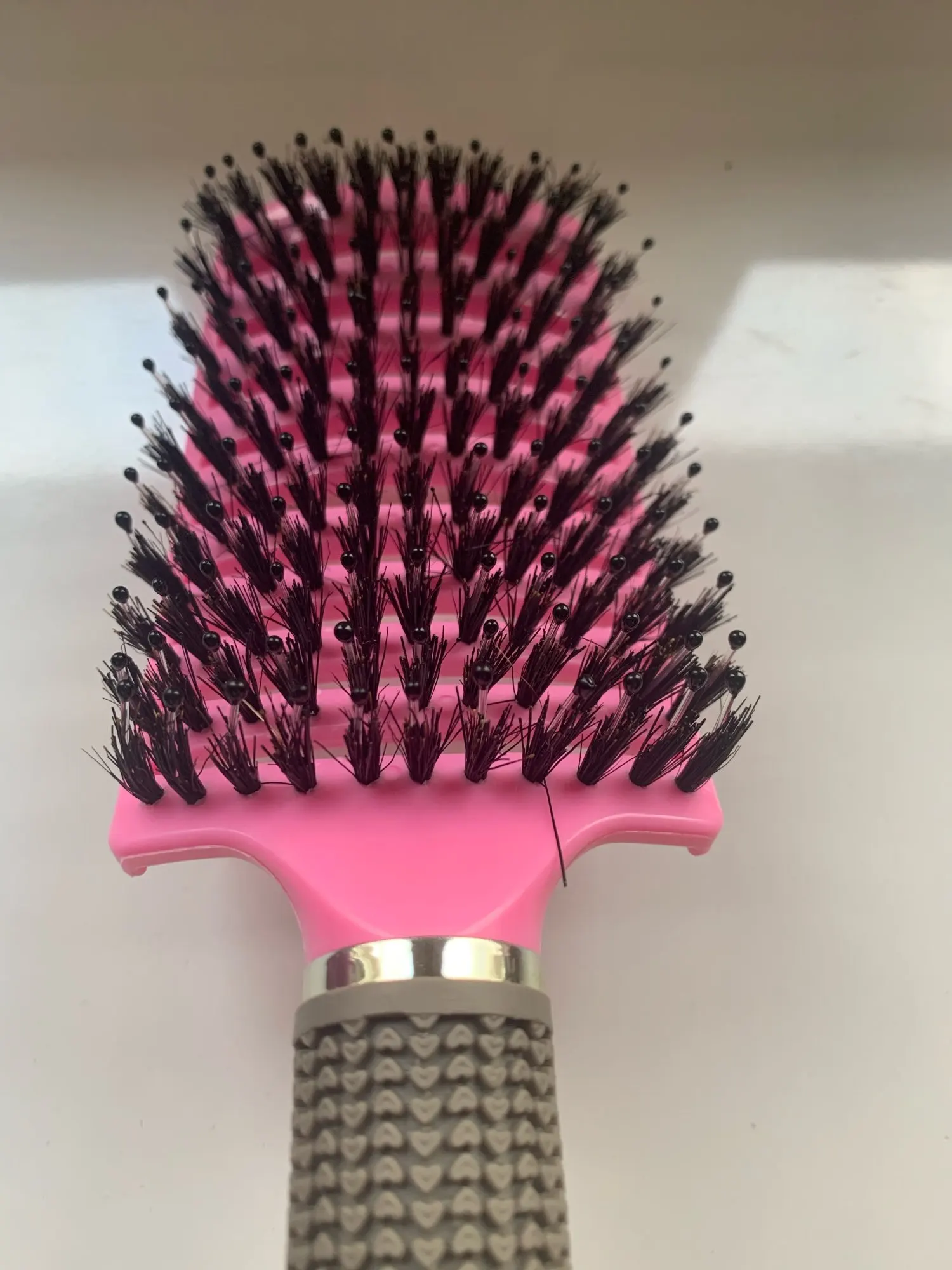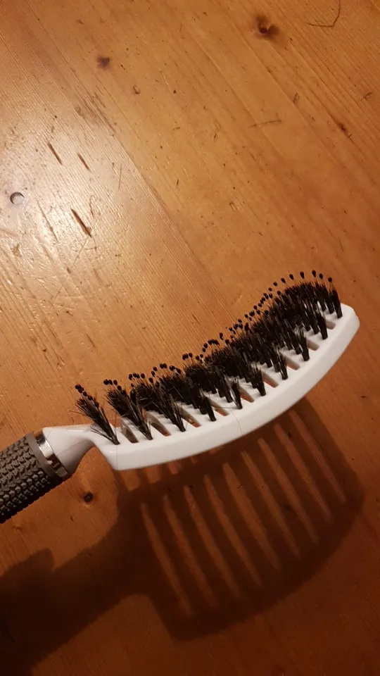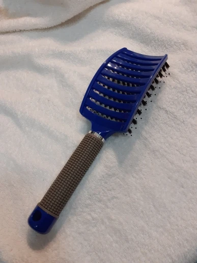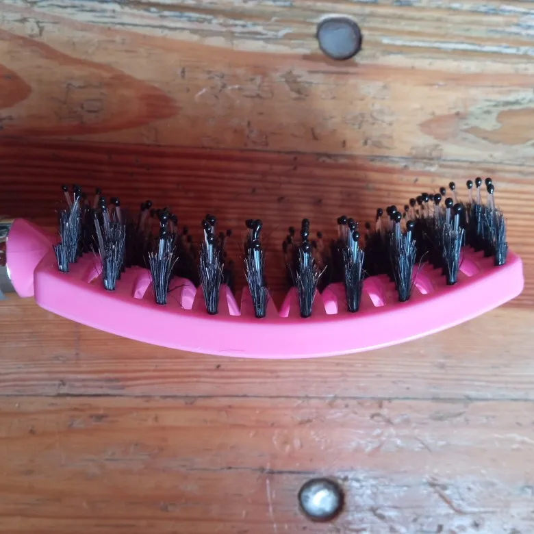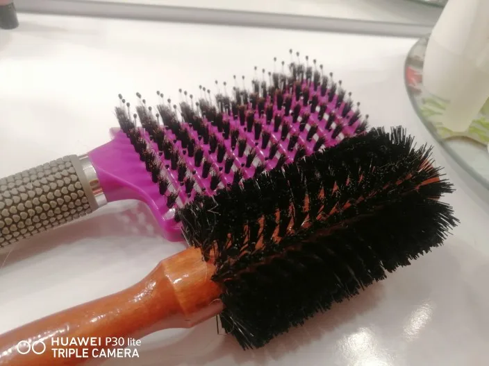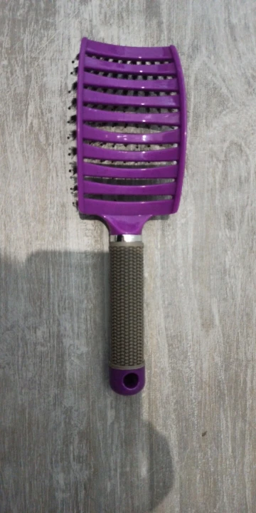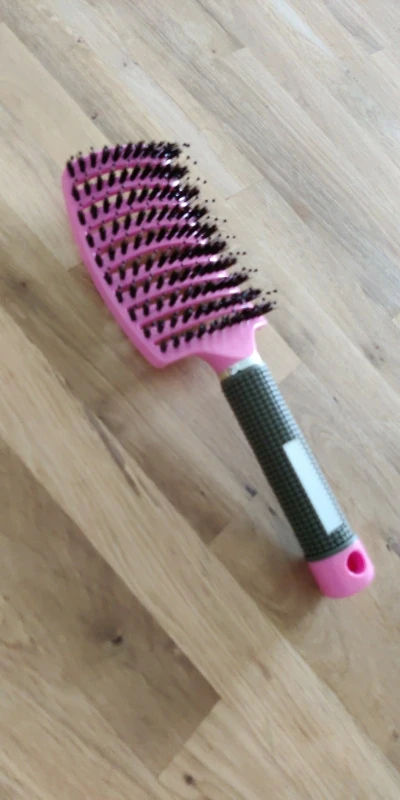 Масажка хорошая, ручка прорезинина, у меня волосы длинные ещё и блонд очень путаются чесать теперь одно удовольствие. Выложила фото рядом брашинг круглый на нем намного больше щётинок, так бы хотелось и на этой масажке побольше щётинок, но и на такой спасибо.