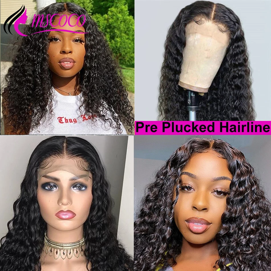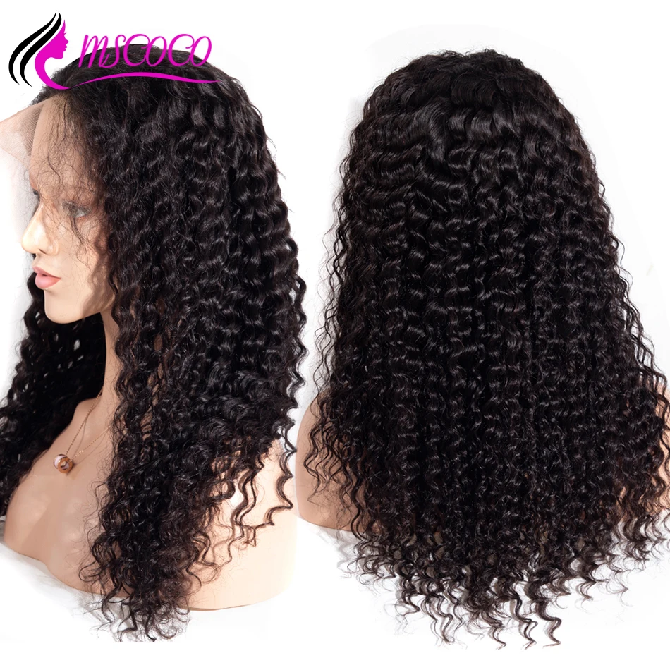 Mscoco глубокая волна парик Синтетические волосы на кружеве человеческие волосы парики предварительно вырезанные 360 Синтетические волосы на кружеве al парик 150 180 250 плотность глубоко вьющиеся синтетические волосы парик из человеческих волос