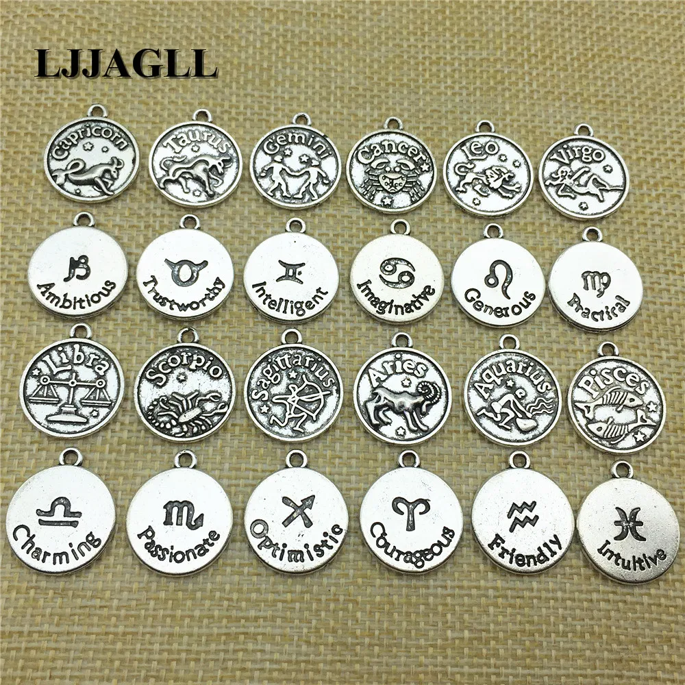 Тибетское серебро из металлического сплава, 10 шт., кулоны со знаками Зодиака, 12 созвездий, подвески, винтажное ожерелье, браслет, сделай сам, ювелирные изделия