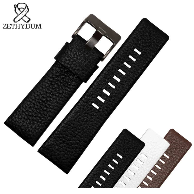 Ремешок кожаный для наручных часов diesel, черный браслет из натуральной кожи 22 24 26 27 28 30 мм