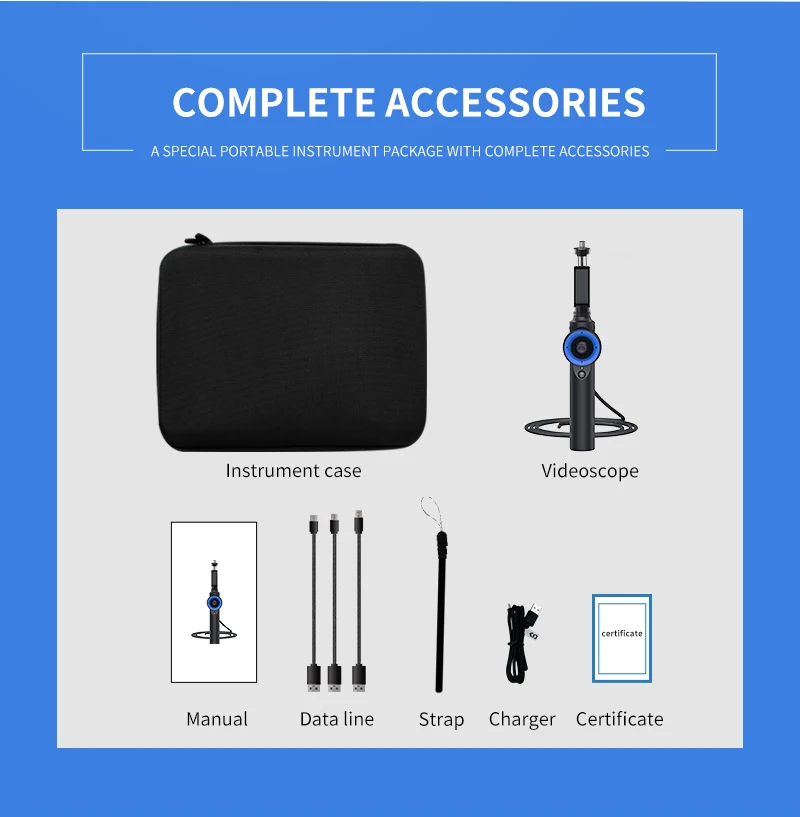 5. 【Портативный чехол Carring 】:Вы получите артикуляционный промышленный эндоскоп 360 °, 3 типа usb-кабелей (поддержка подключения к телефонам Apple и Android), чехол для переноски, руководство пользователя.