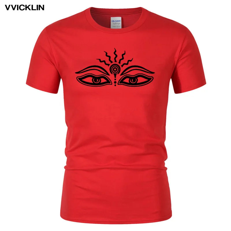 2021 Новые Летние глаза Будда символ печати футболки Мужская хлопковая футболка с коротким рукавом футболки Ом АУМ Будда с О-образным вырезом топы, футболки размера плюс