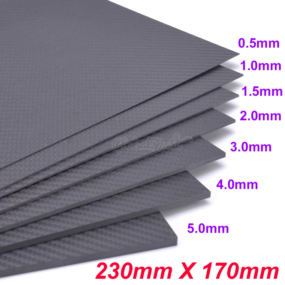 Панель из углеродного волокна, 230 мм x 170 мм, 3k, 0,5 мм, 1 мм, 1,5 мм, 2 мм, 3 мм, 4 мм, 5 мм, лист панели из углеродного волокна для дрона RC FPV